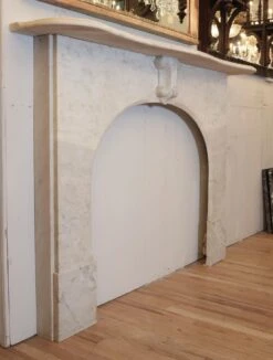 Antique French Marble Mantel With Center & Side Scroll Motif