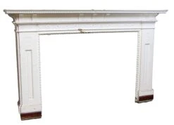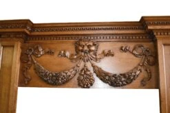 Antique French 6.5 Ft. Tall Birch Wood Mantel With Beveled Mirror