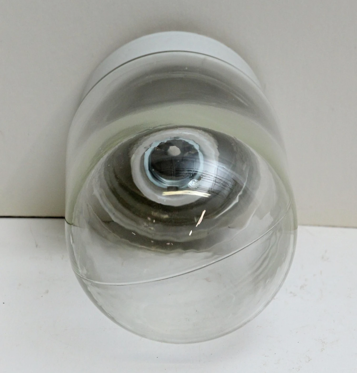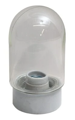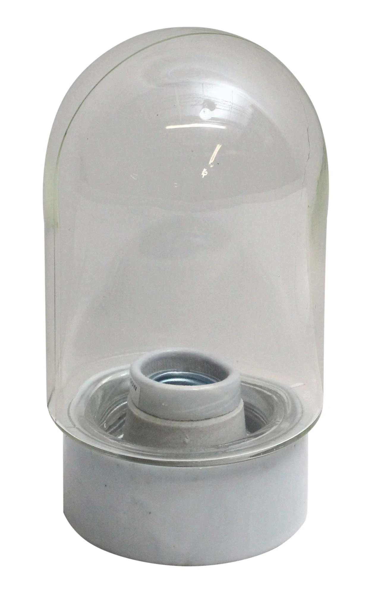 Single socket porcelain base fixture with clear jar shaped glass. Price includes restoration. Priced each.