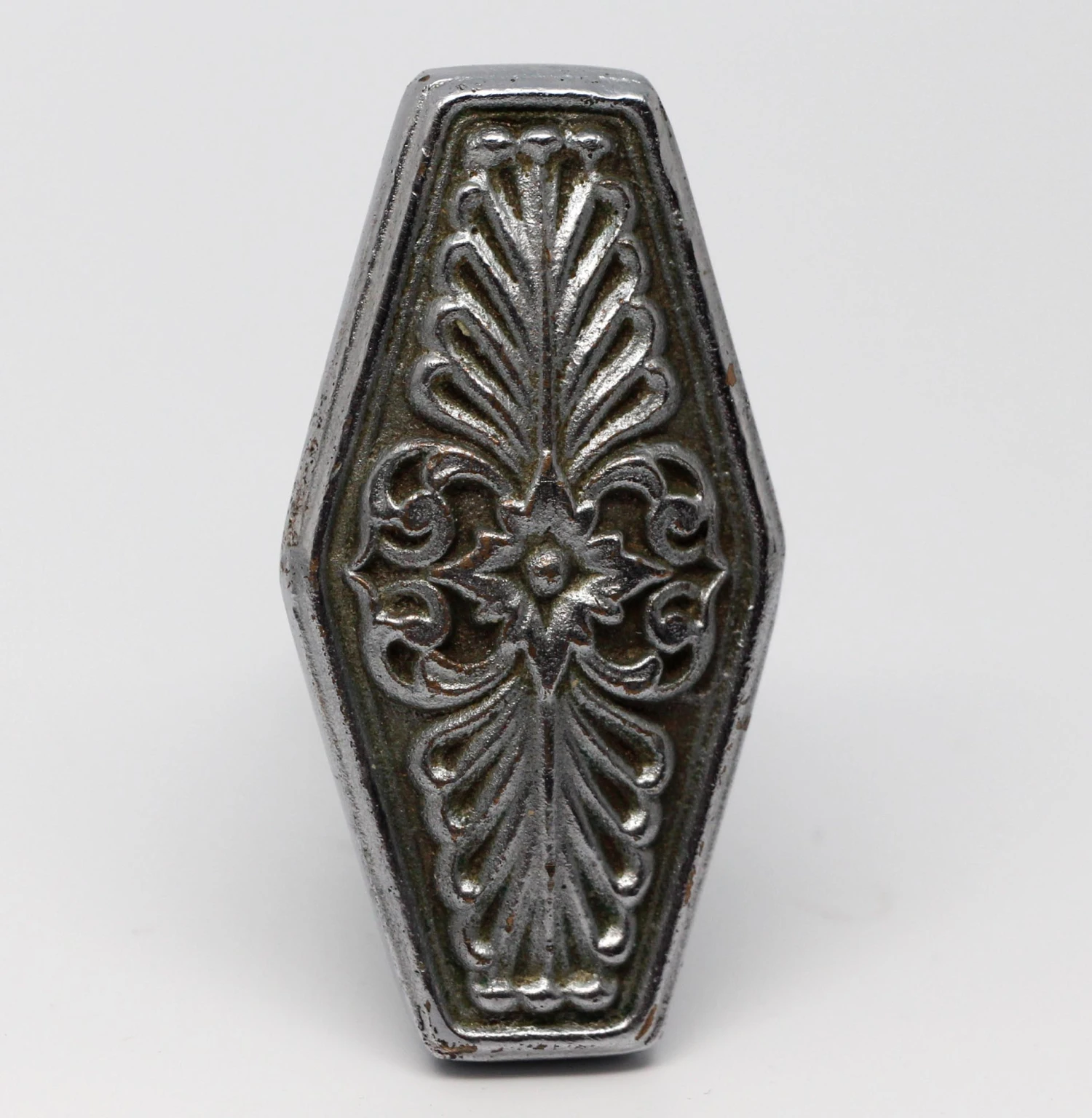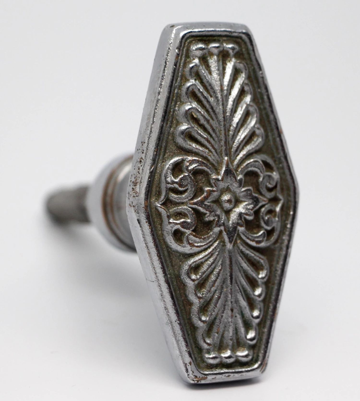 This two fold nickel over bronze oval door knob was made by Russell & Erwin in the 1931 catalog. It is part of the N-10400 group. Priced each. This is a special design for the Waldorf Astoria Hotel in New York City.