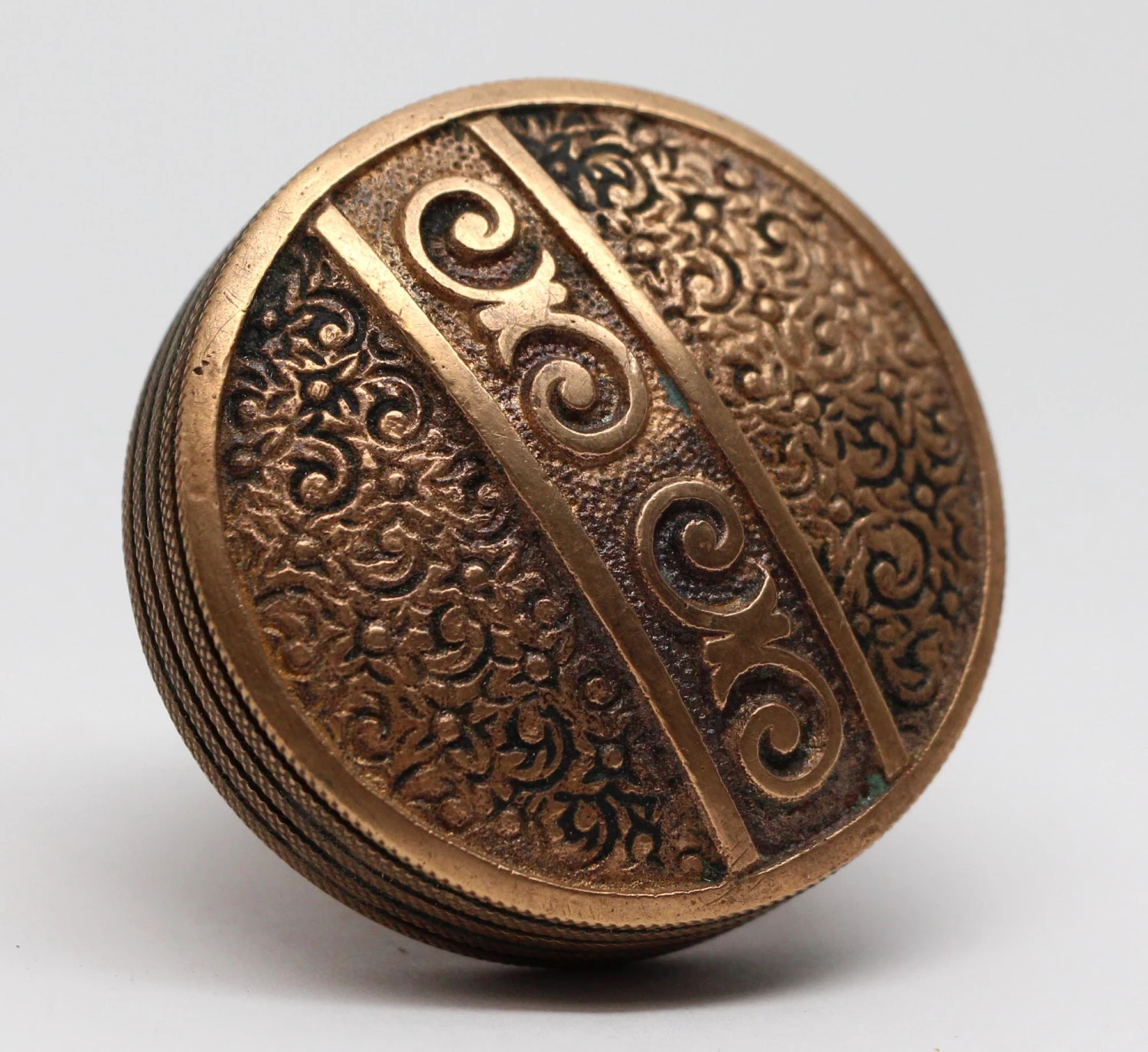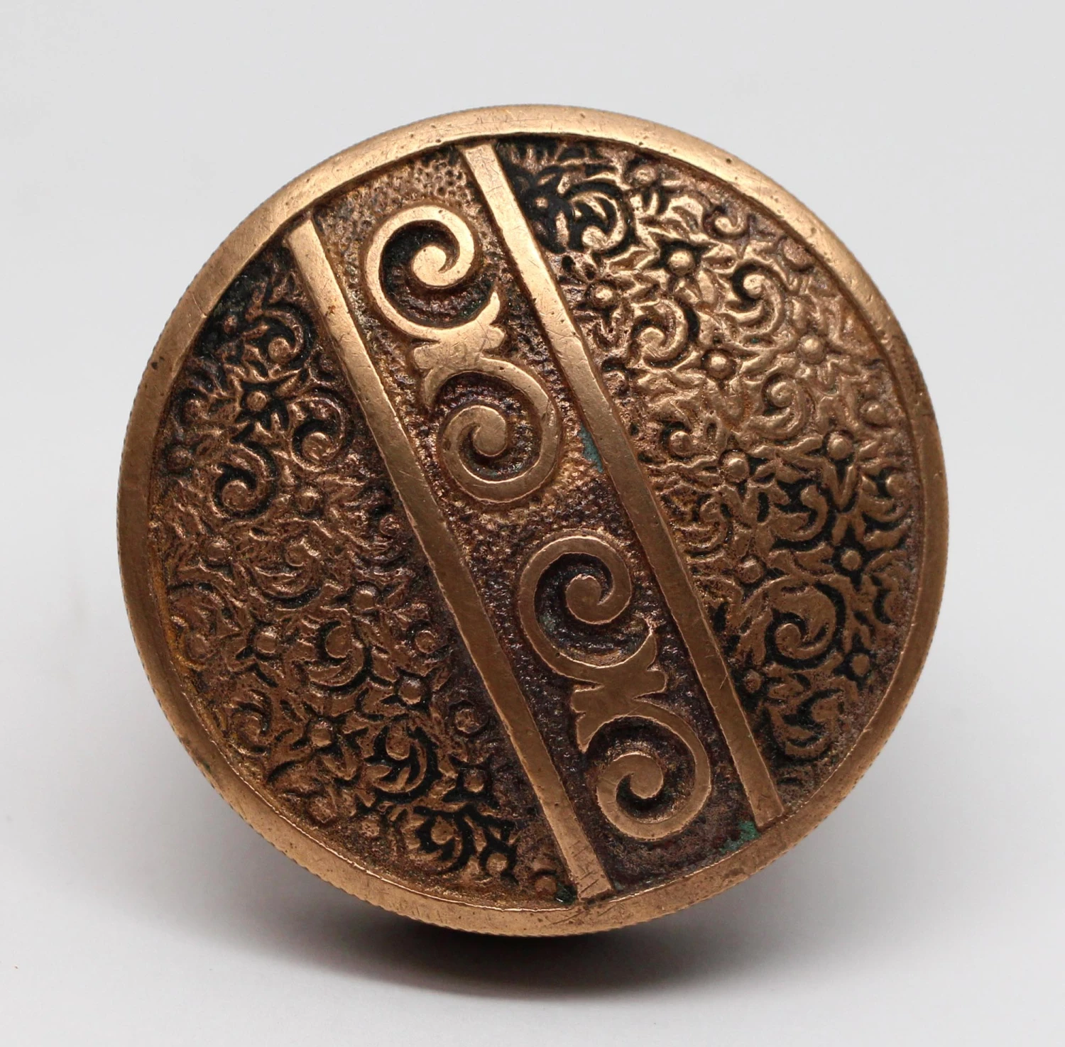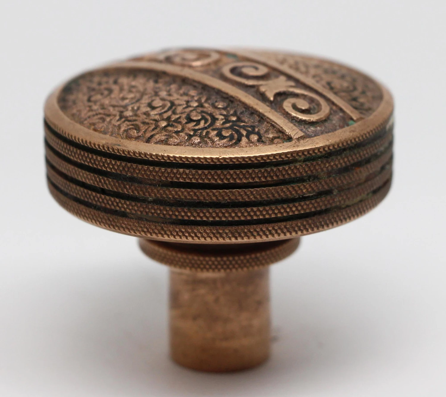 This Vernacular style two fold knob was made by Nimick & Brittan in the 1883 catalog. It is part of the F-11600 Bouquet group. Priced each.
