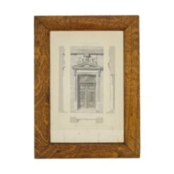 Oak Framed 19th Century Architectural Print Of Lateral Door Of Saint-Nicolas Du Chardonnet By Cesar Denis Daly