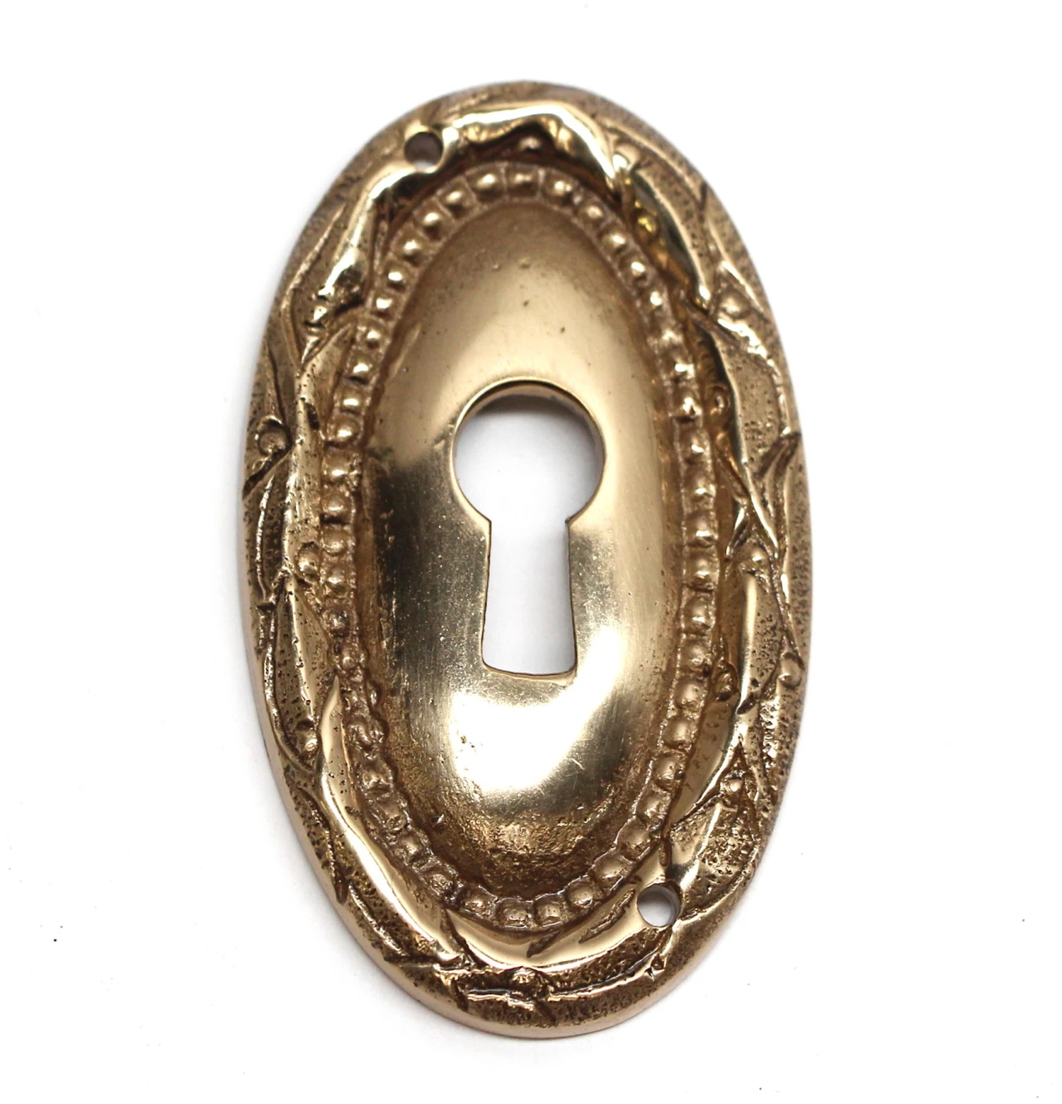 This keyhole cover features a solid brass construction, ensuring durability and a classic, timeless appeal. The oval shape adds a touch of sophistication to your doors, while the braided and beaded detailing provides a subtle yet distinctive element. The polished solid brass material brings a timeless and elegant quality to your door hardware.