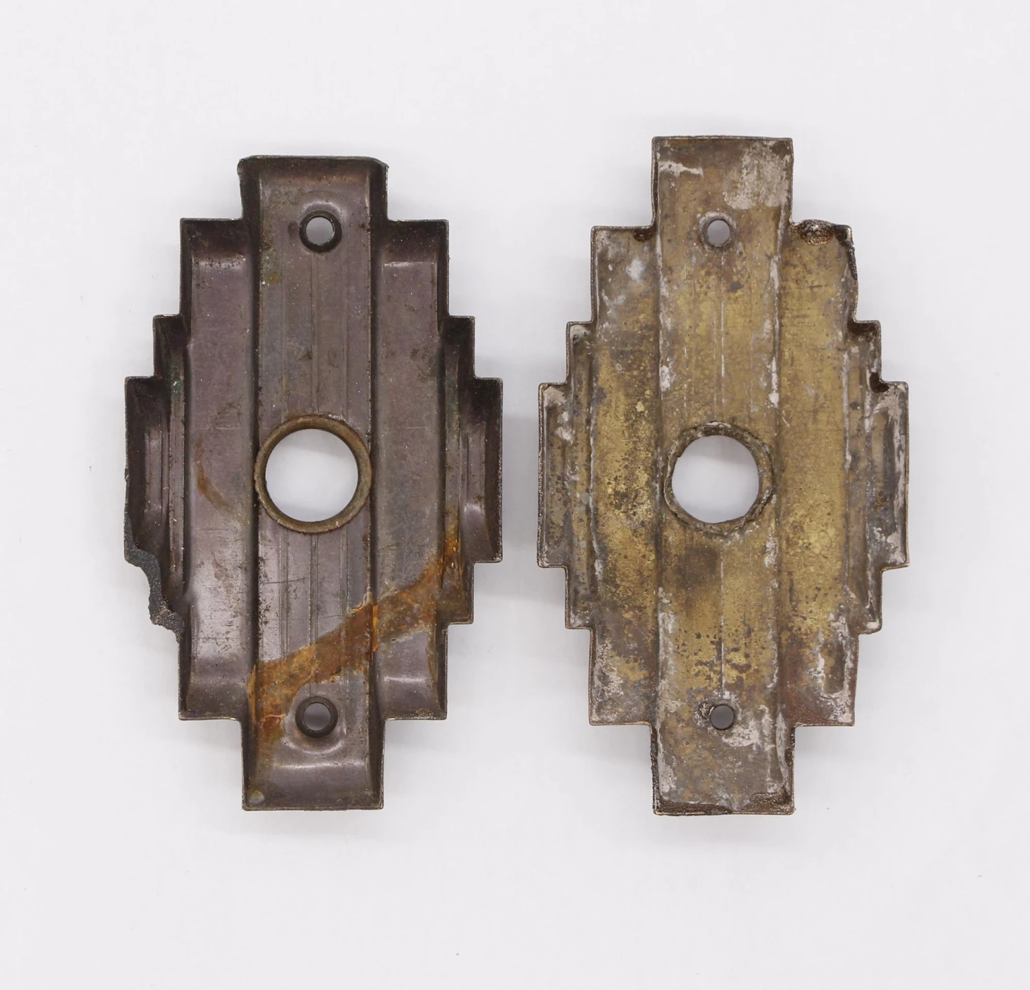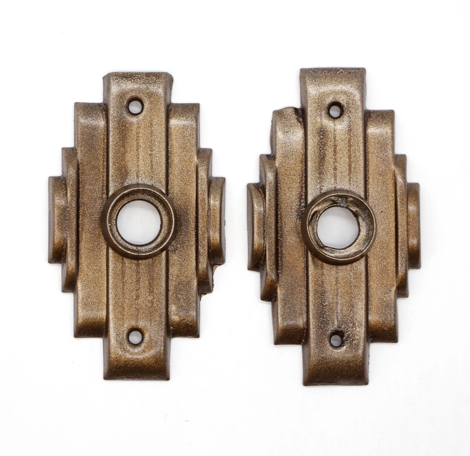 Pair Of 3.625 In. Refinished Art Deco Pressed Brass Door Back Plates
