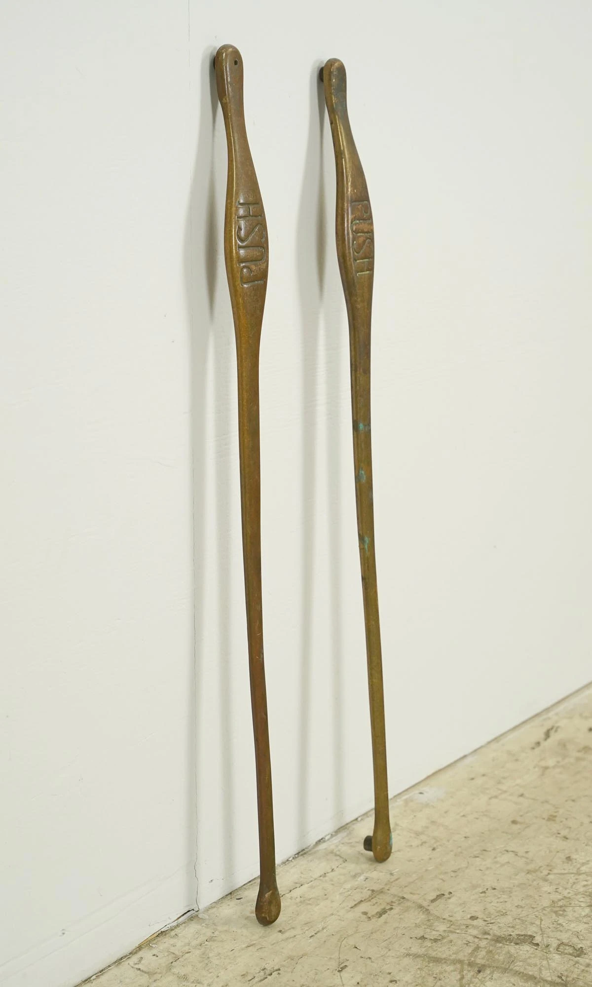 Vintage commercial door cross bars with a PUSH inscription. Good patina and condition with appropriate wear from age and prior use. Priced as a pair.
