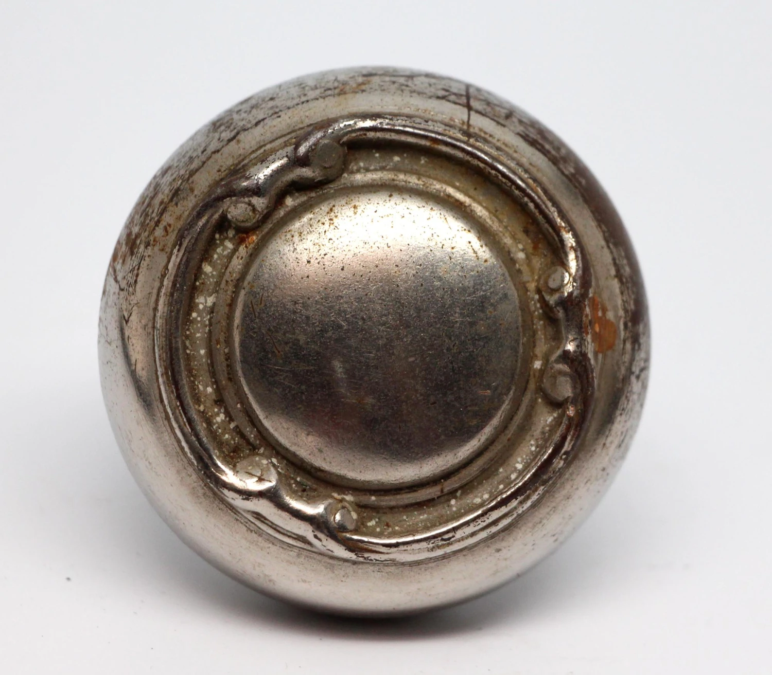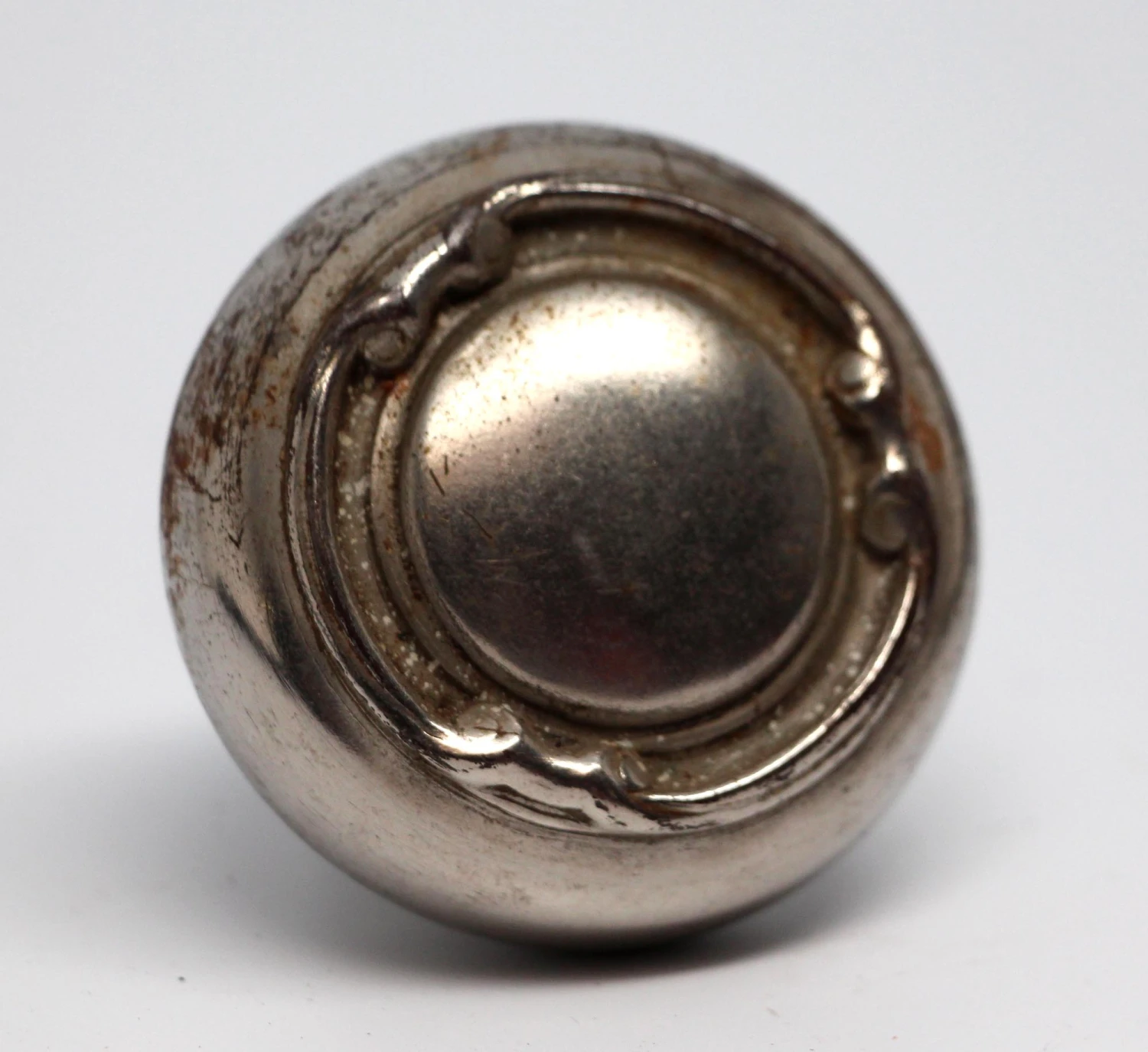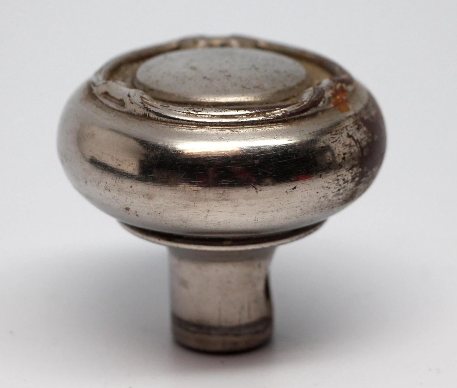 This 3 fold knob was made in the 1900s catalog. It is part of the G-14500 group. It is shown in a nickel finish over steel. Priced per pair of knobs with a spindle.