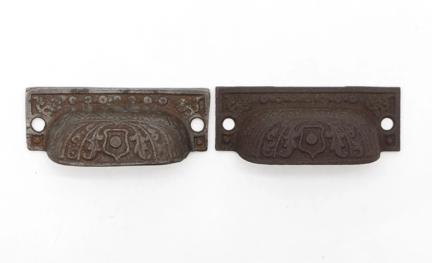 Pair Of Antique Victorian 3.25 In. Cast Iron Bin Drawer Pulls