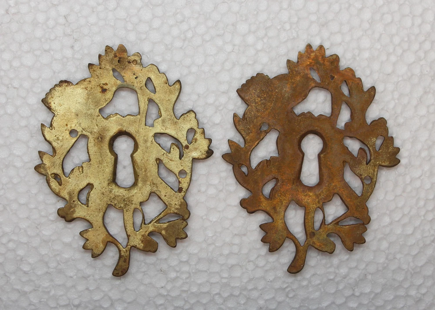 Pair Of Antique Victorian Brass Cut Out Of Keyhole Covers