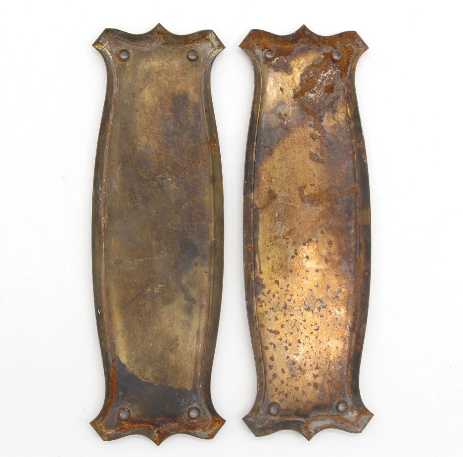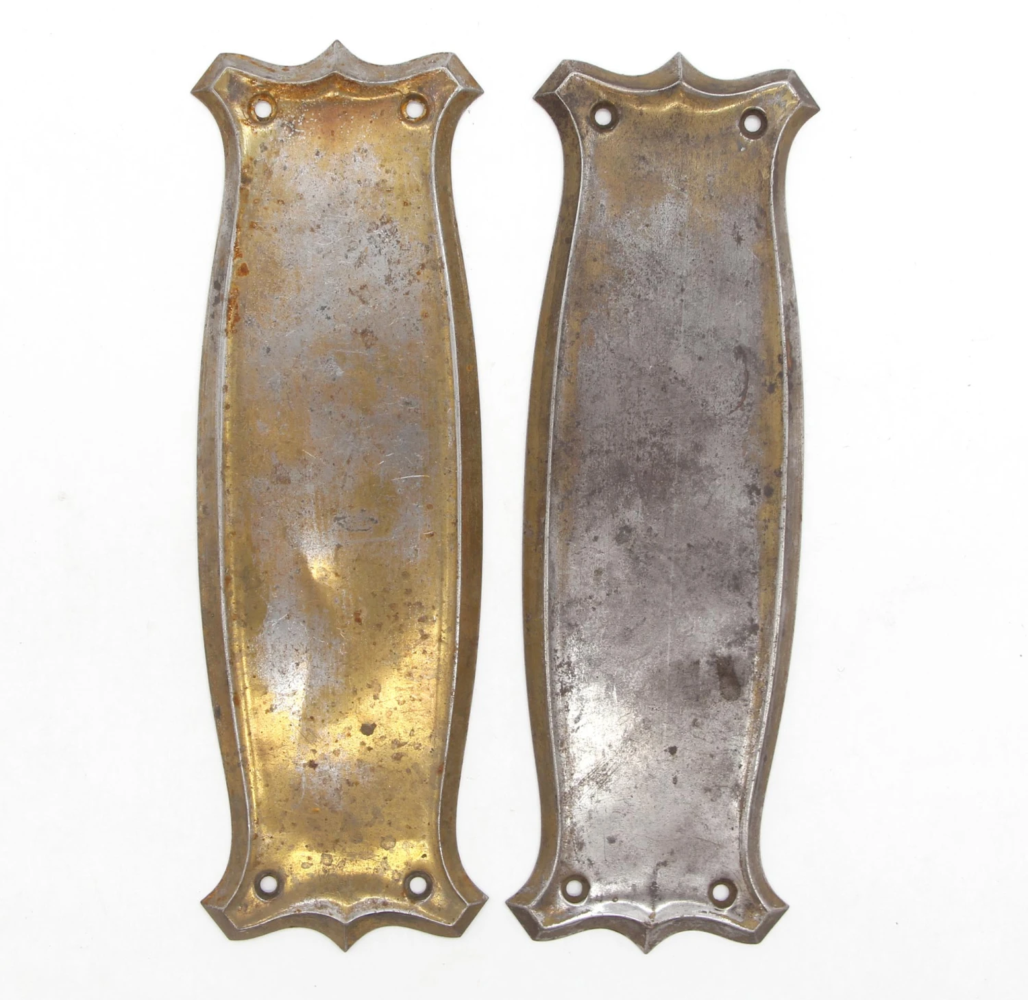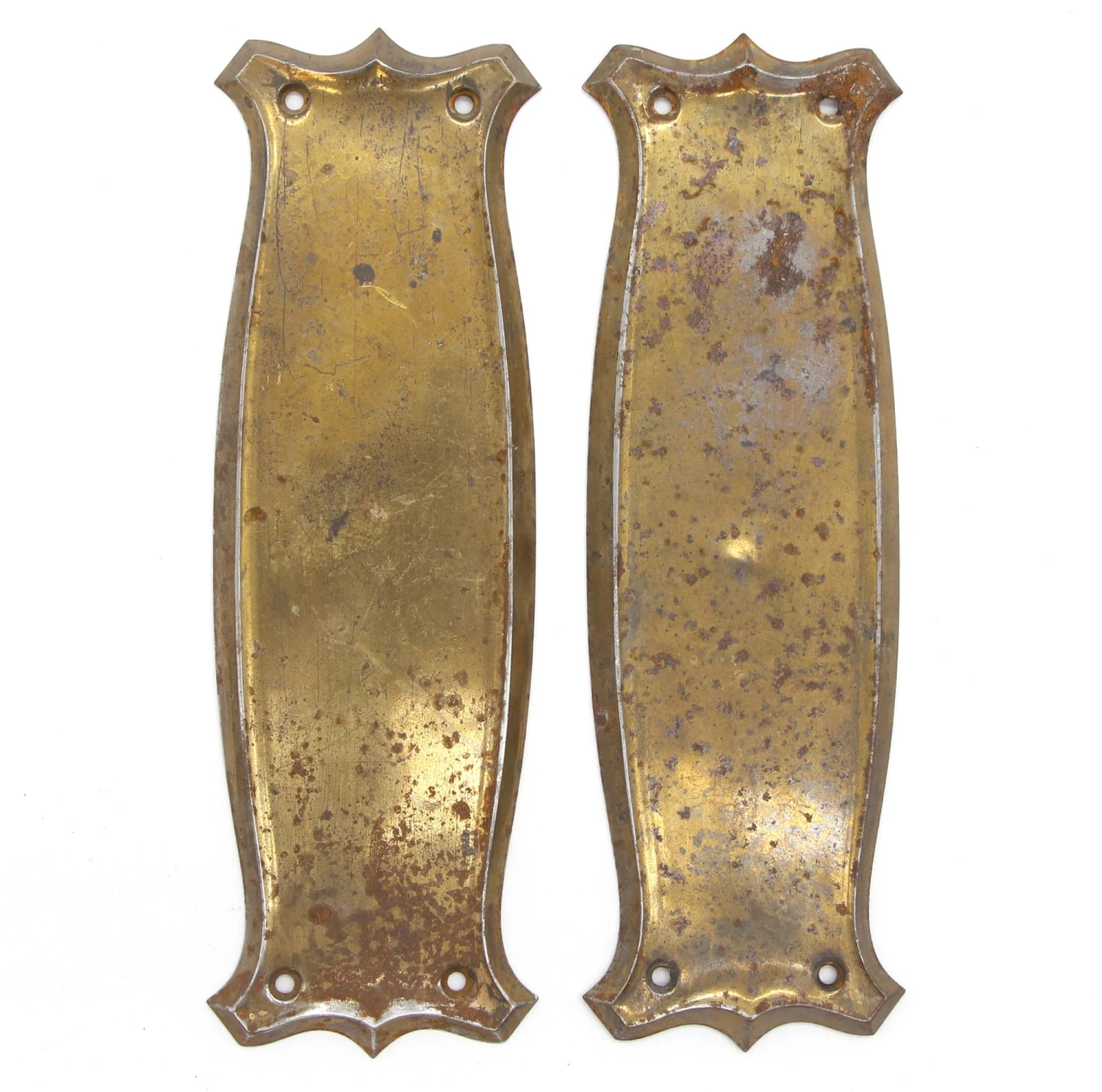 Pair Of Art Deco 9.25 In. Brass Finish Steel Door Push Plates