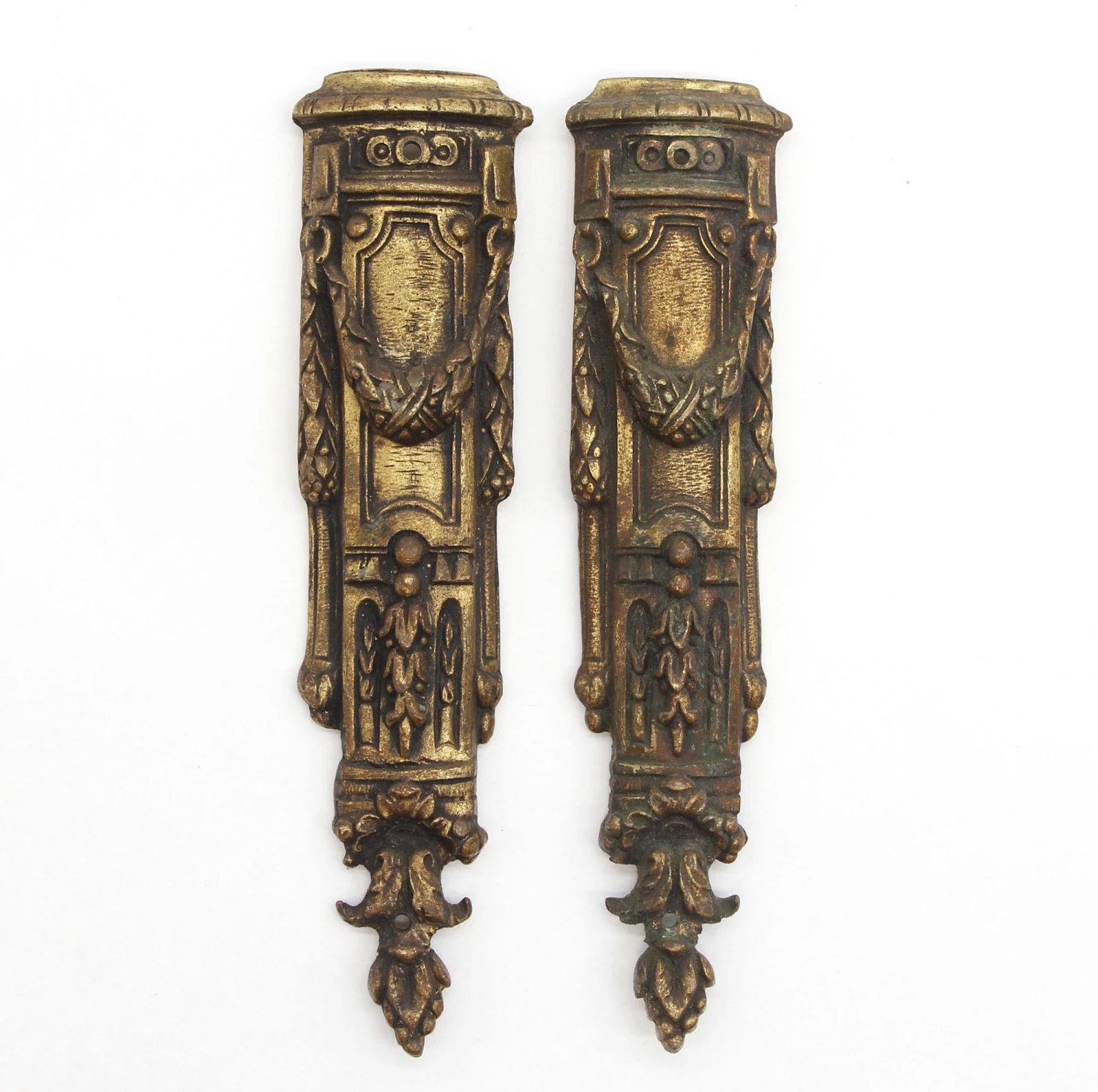 Pair Of European 7.75 In. Ornate Bronze Furniture Leg Appliques