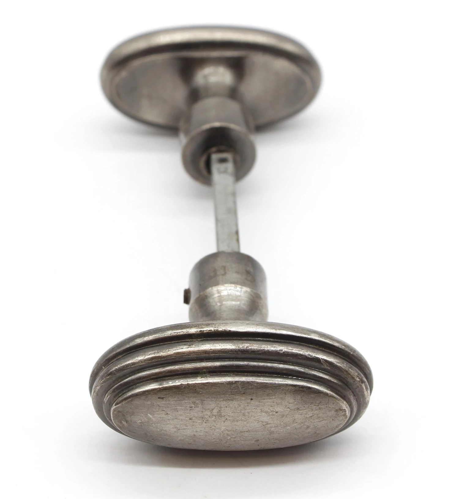 Be the first to review “Pair Of Nickeled Cast Brass Concentric Oval Door Knobs” Cancel reply