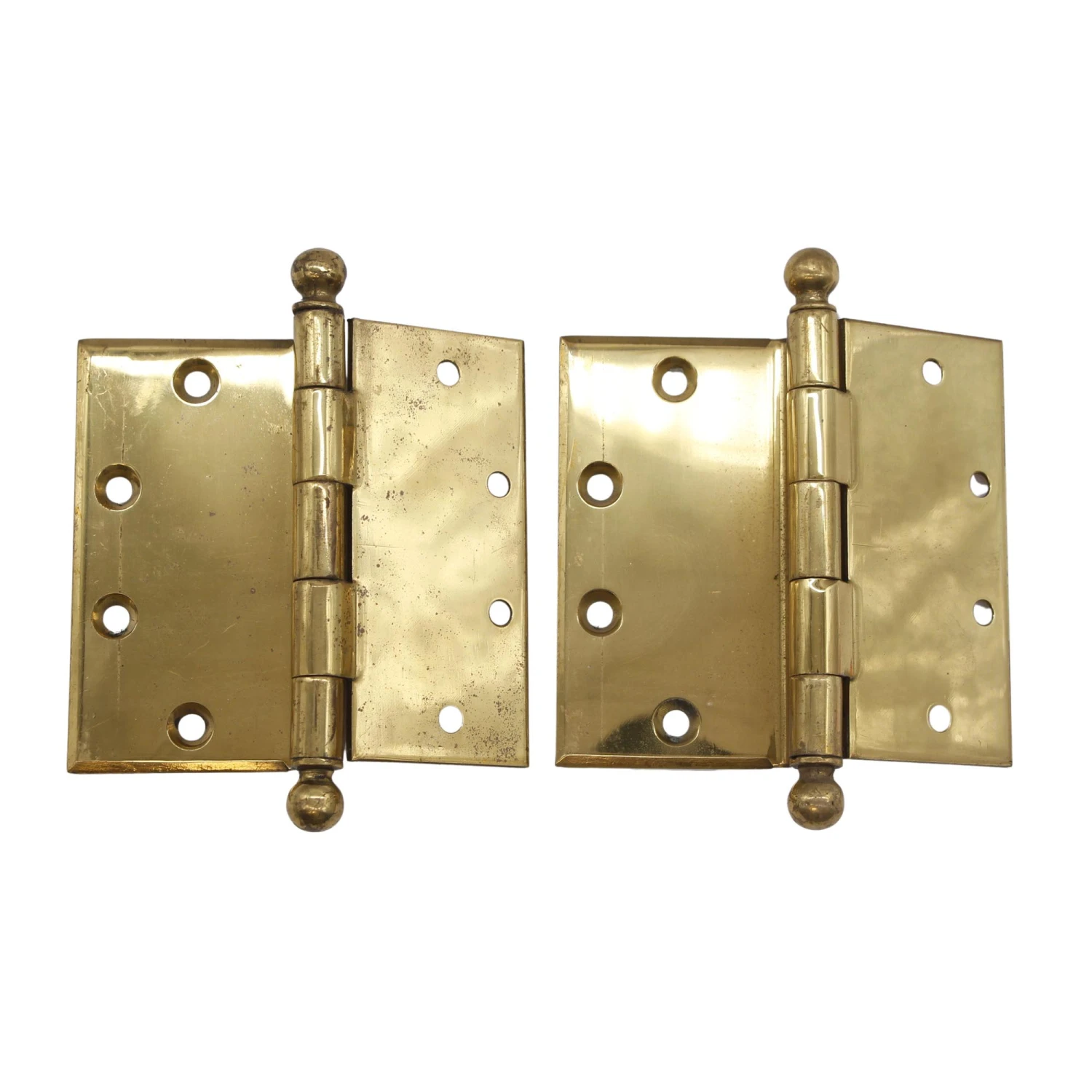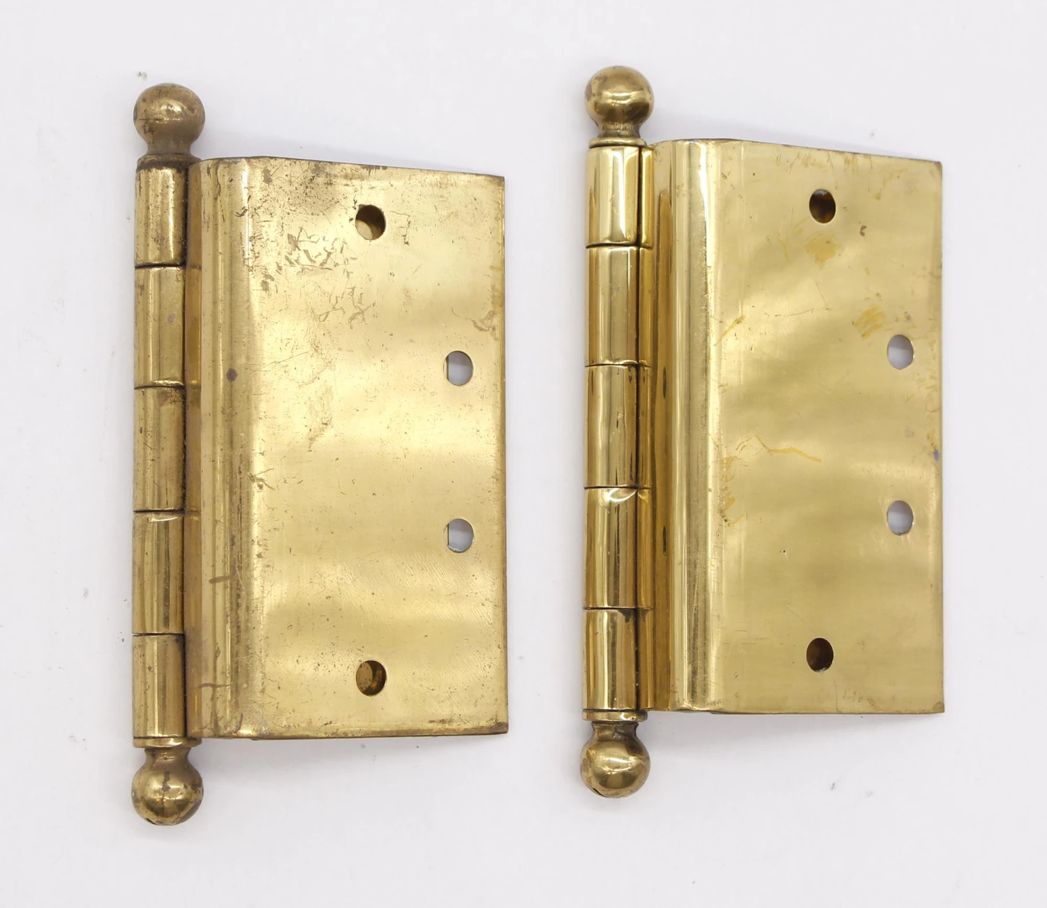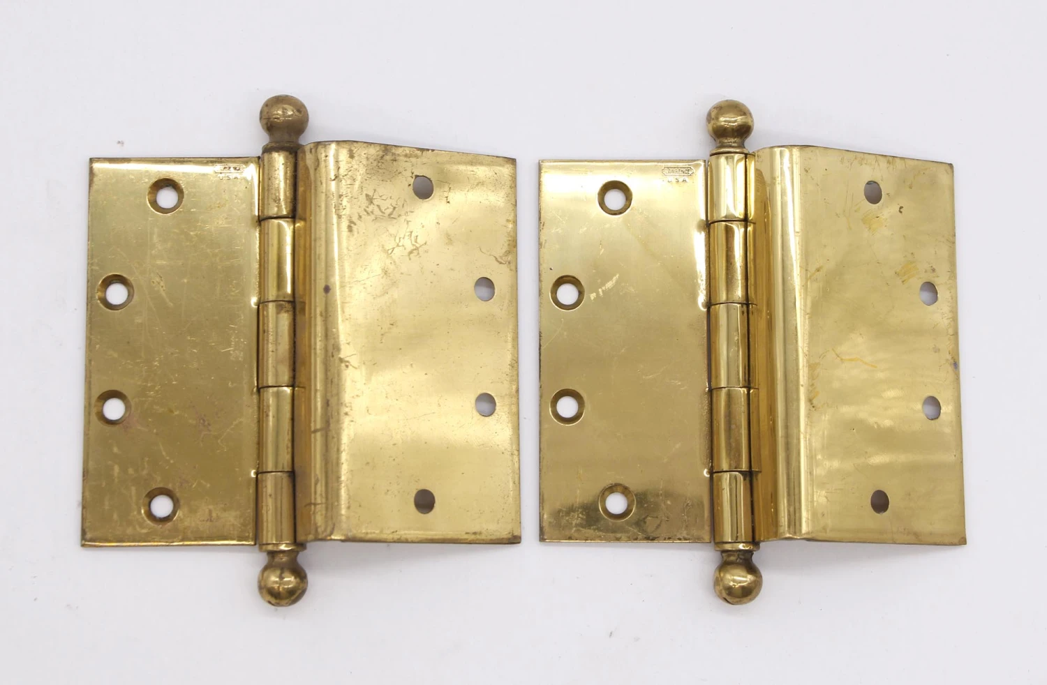These are made of polished brass with ball tips, five bearing knuckles, and a template hole pattern. Made by Lawrence in the USA. Good condition with appropriate wear from age. Priced as a pair.