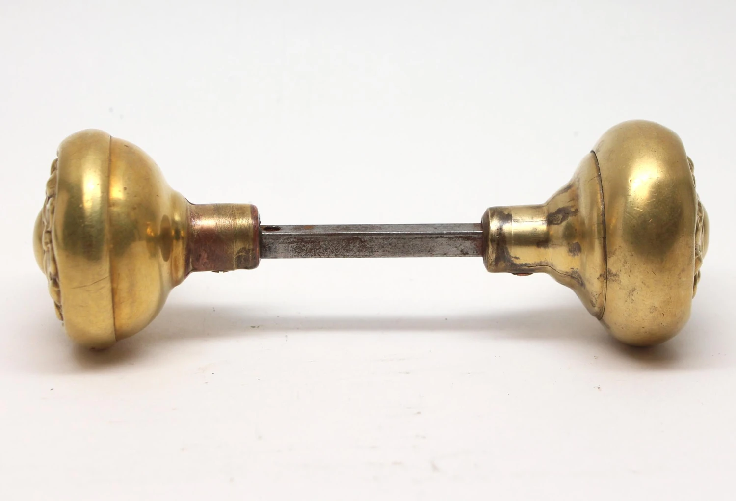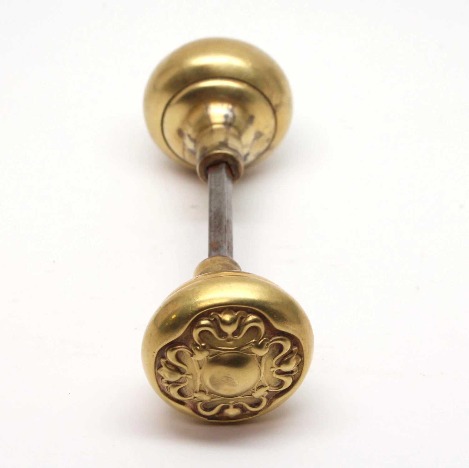 These Art Nouveau style four fold knobs were made Reading in the 1895 catalog. It is part of the H-43300 Nouvelle group. Set includes two knobs with a spindle.
