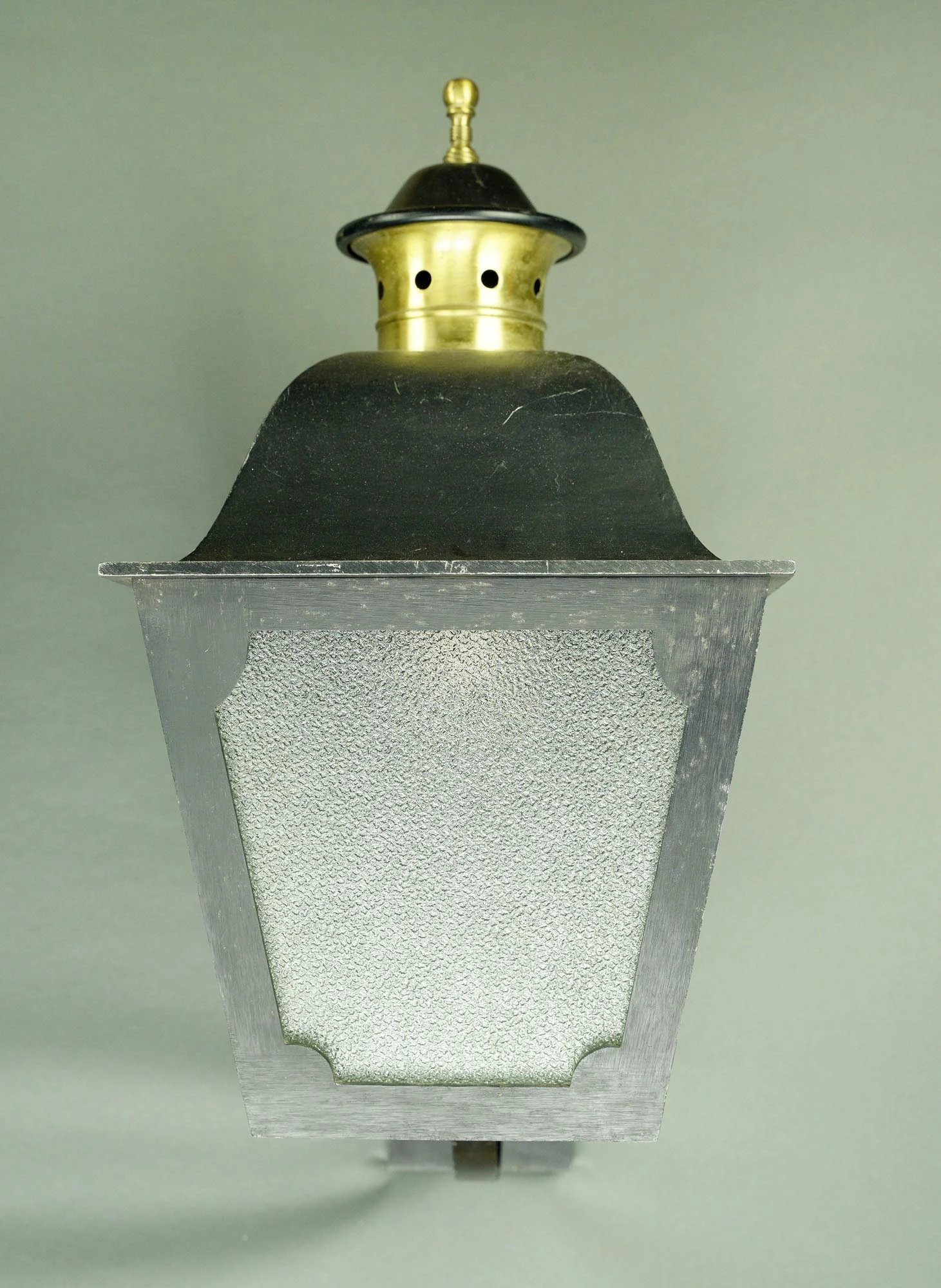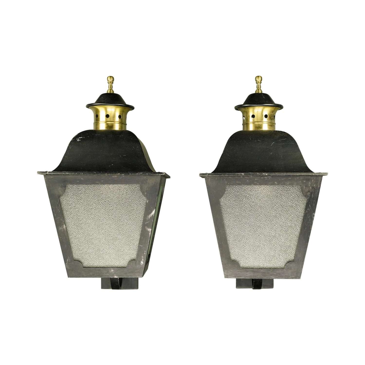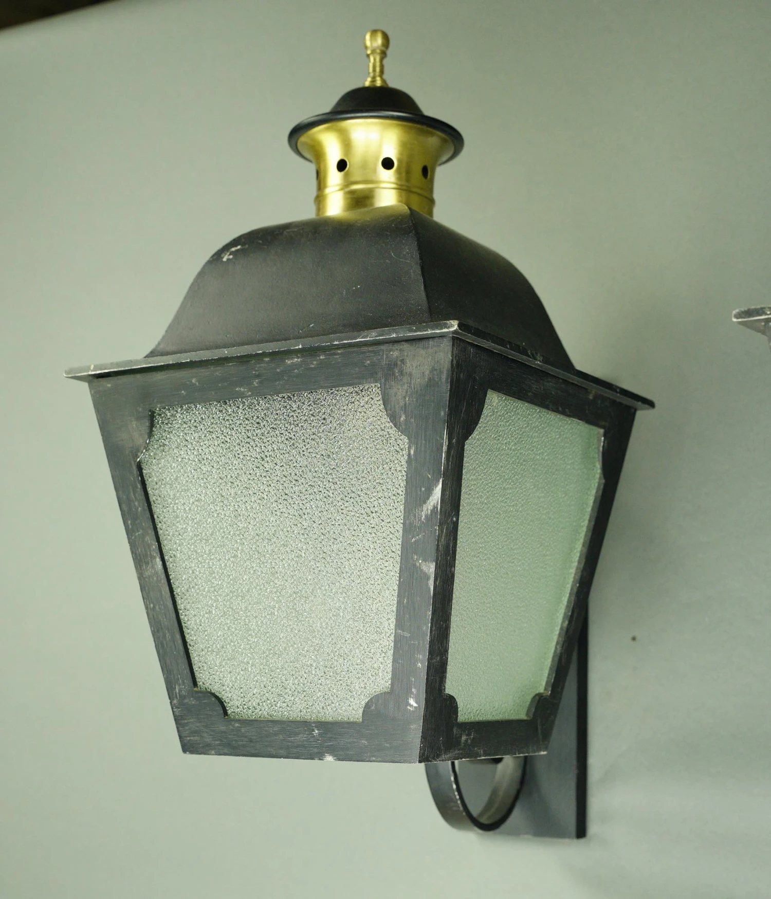 Pair Of Traditional Pebbled Glass Black Steel Wall Lantern Exterior Sconces