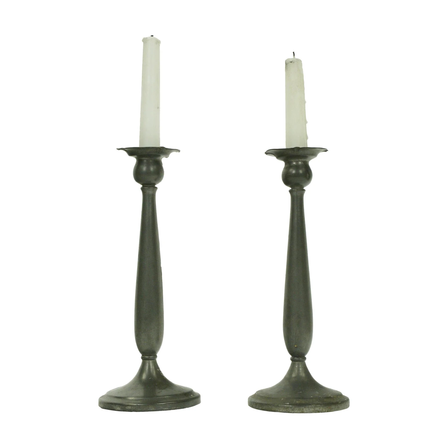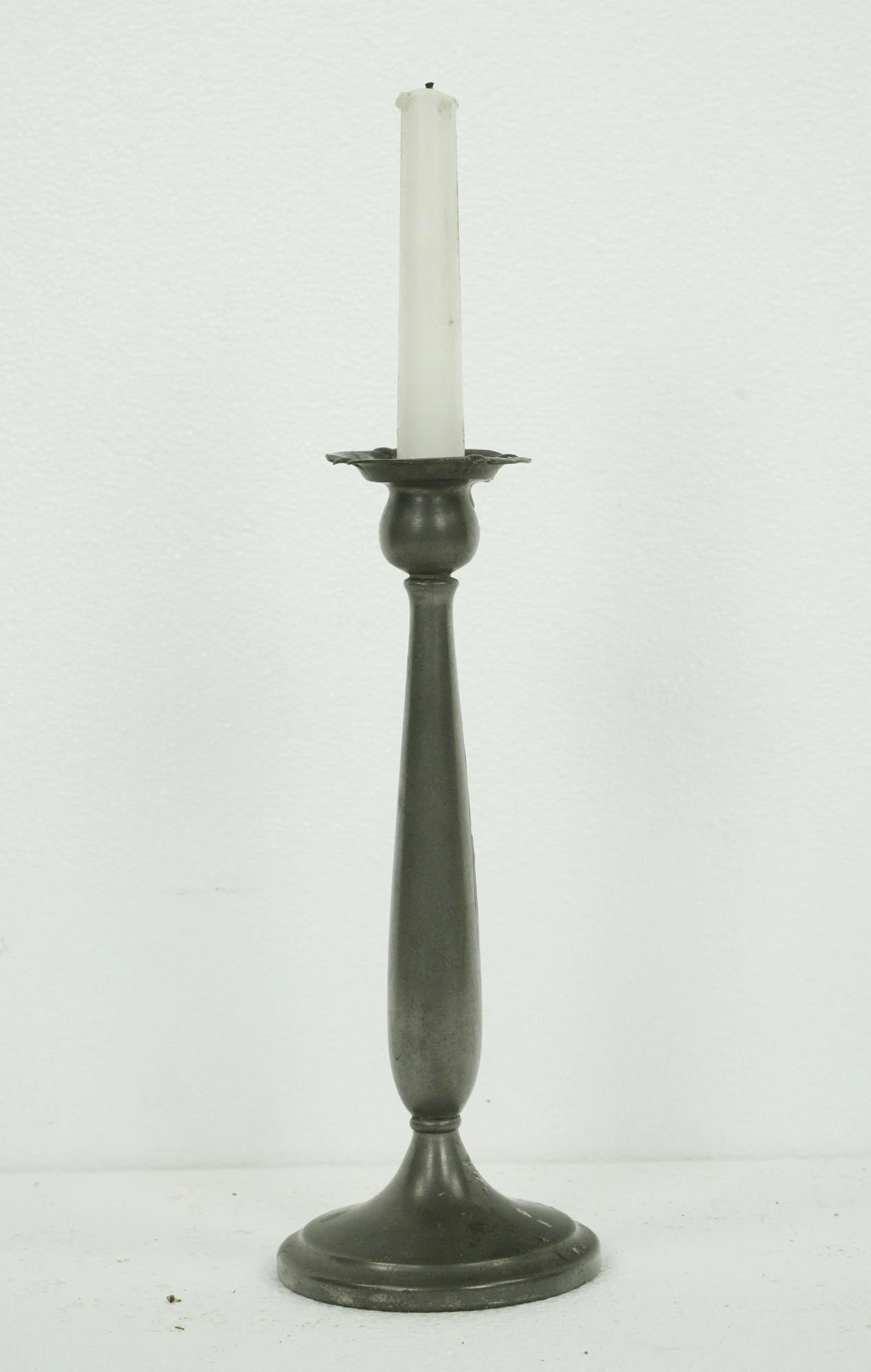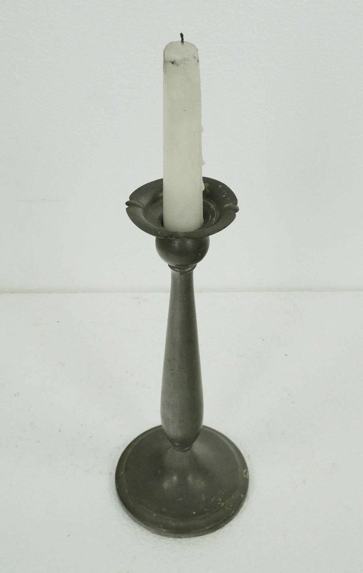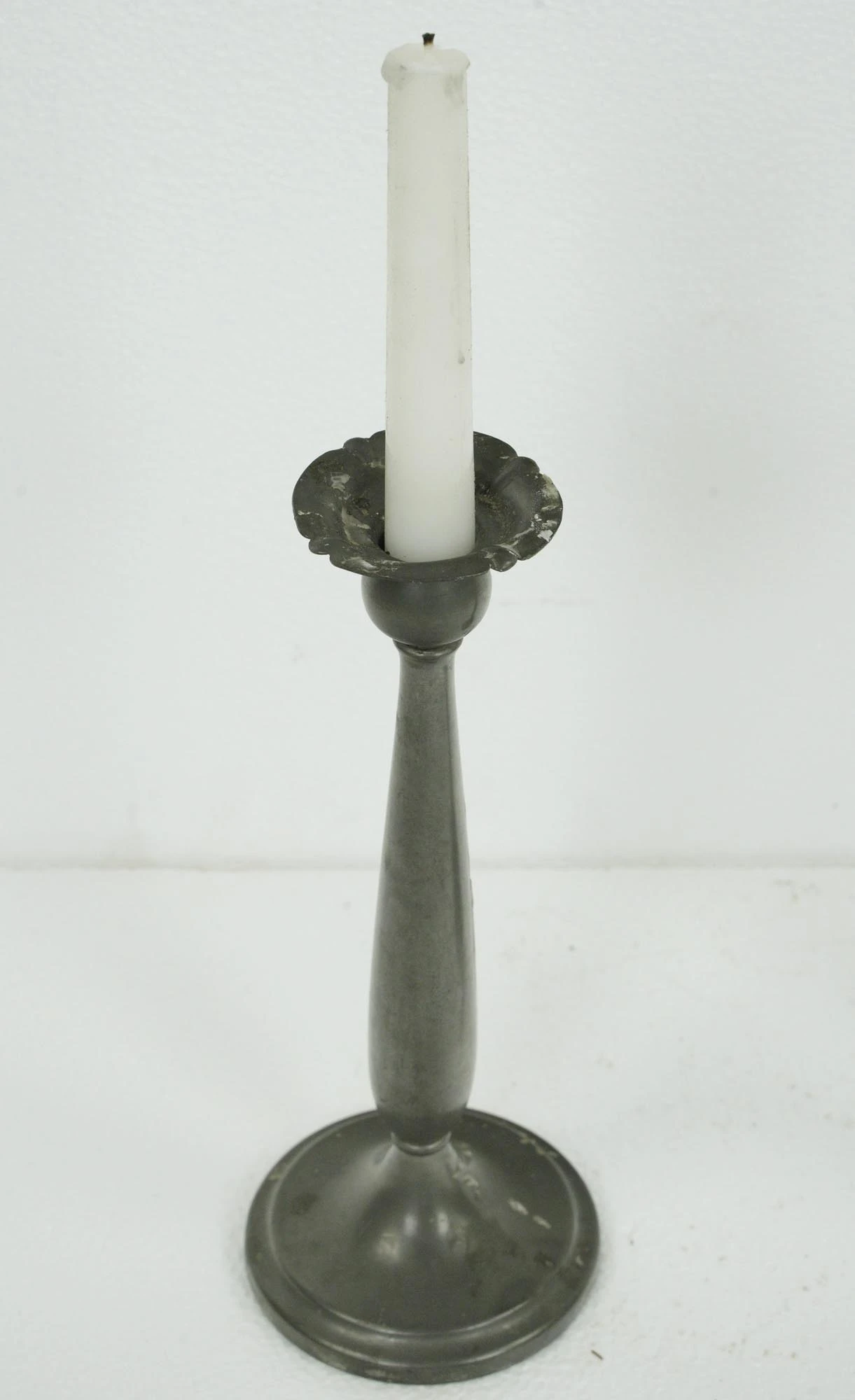 Traditional style slender pewter candle holders. Good condition with appropriate wear from age. Priced as a pair.