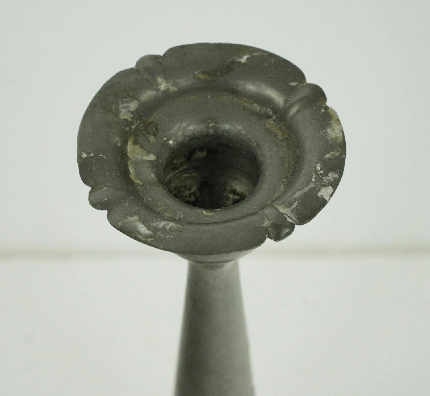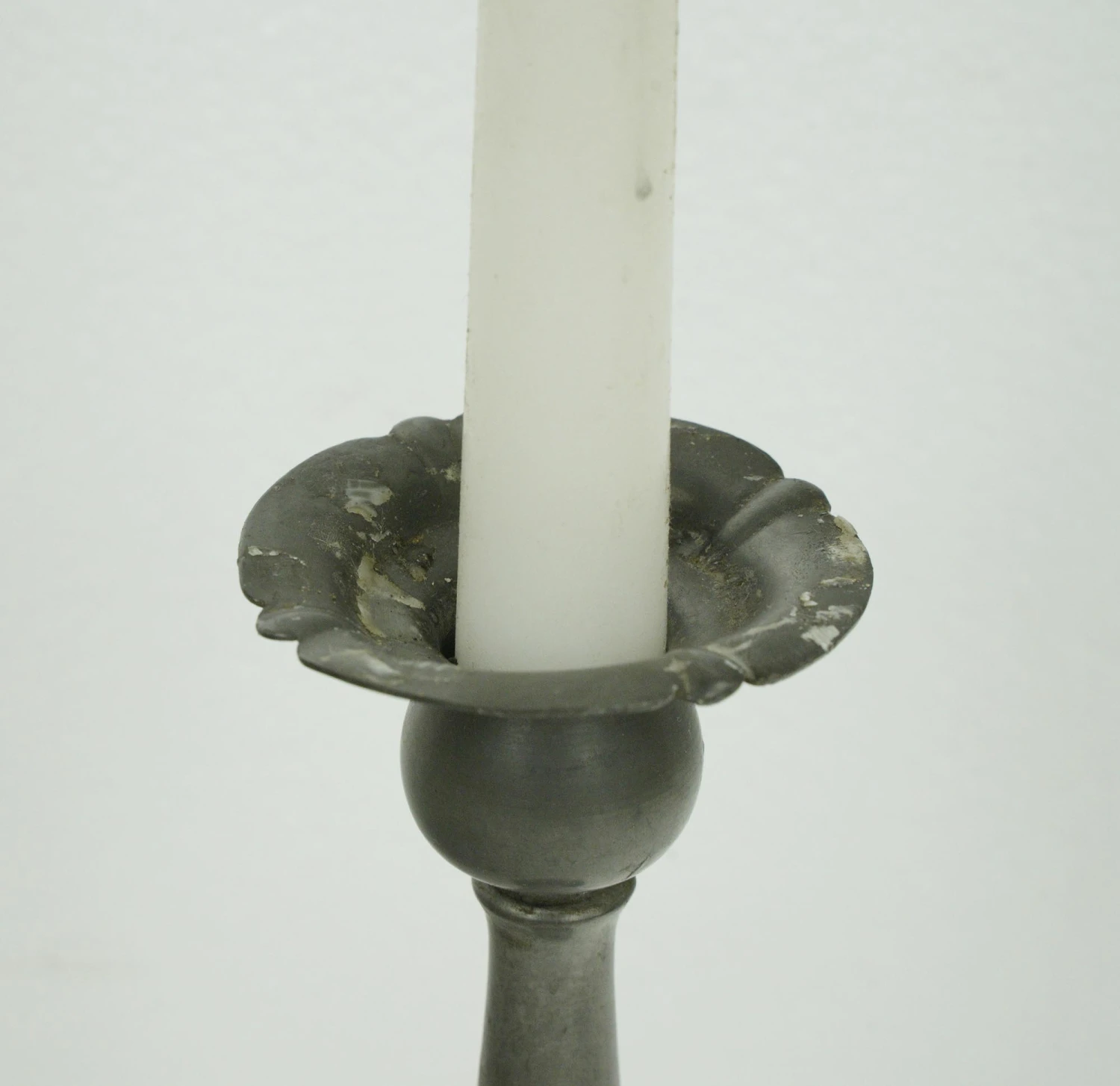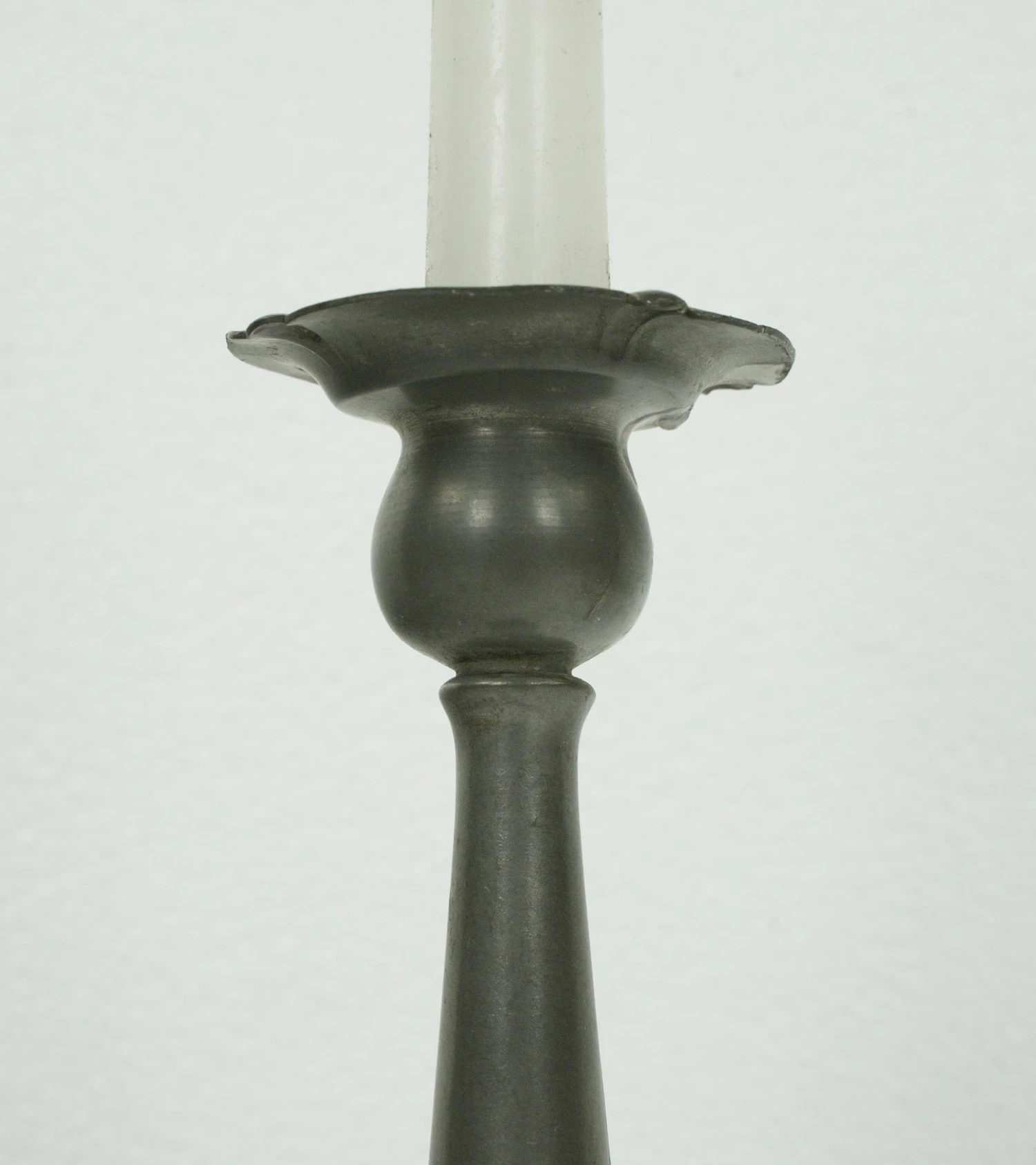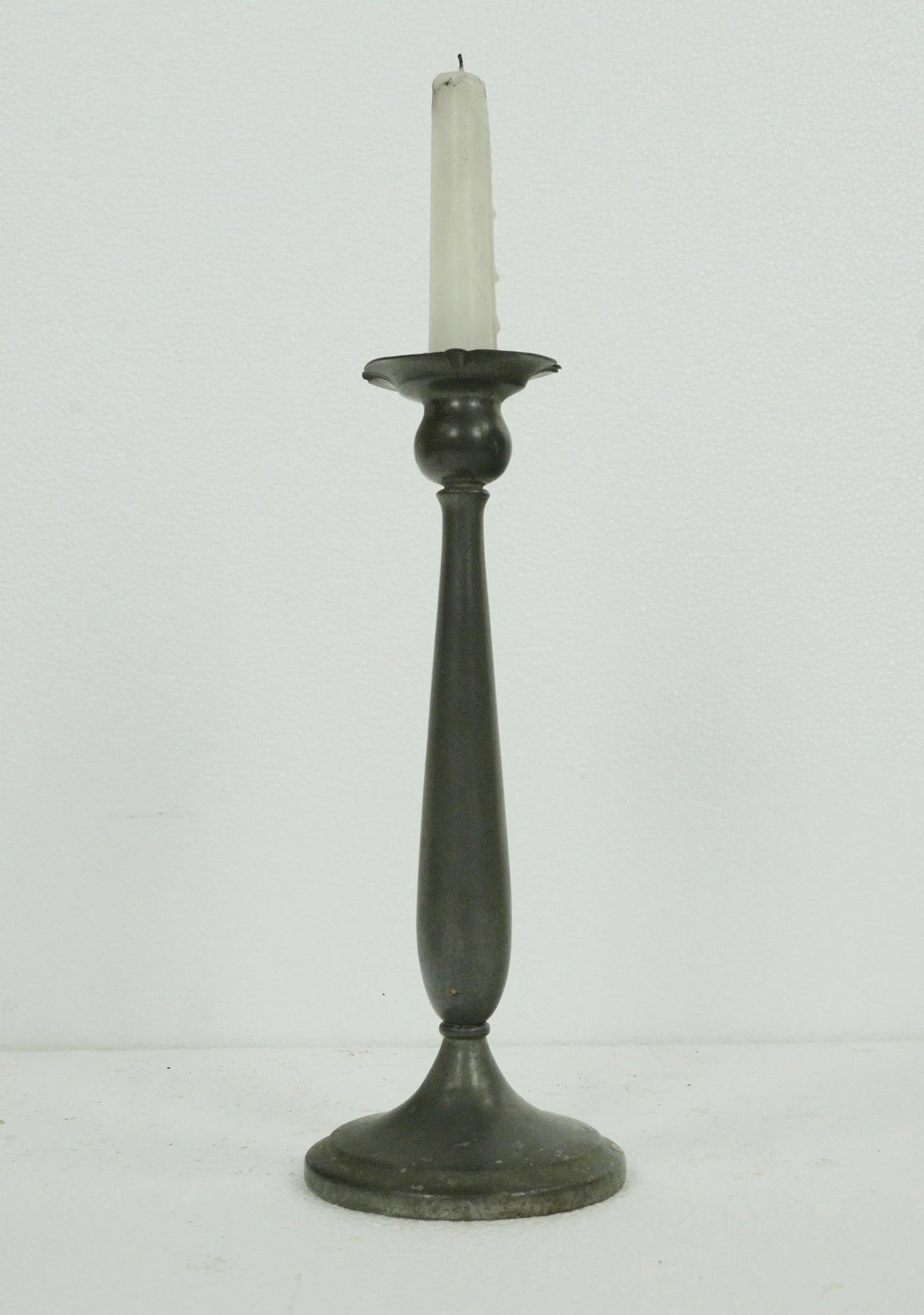Traditional style slender pewter candle holders. Good condition with appropriate wear from age. Priced as a pair.