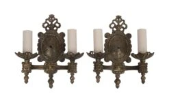 Be the first to review “Pair Of Tudor Style Double Arm Bronze Wall Sconces” Cancel reply
