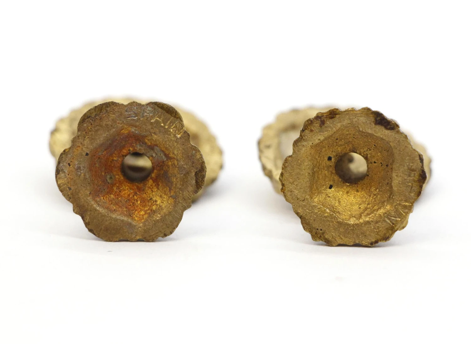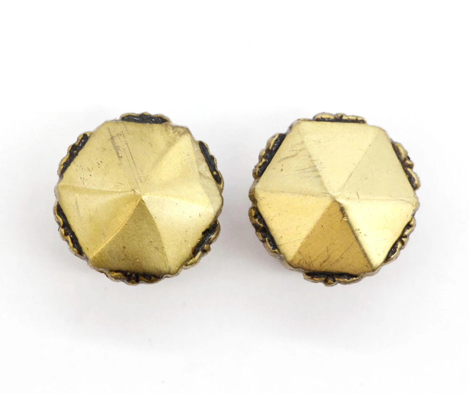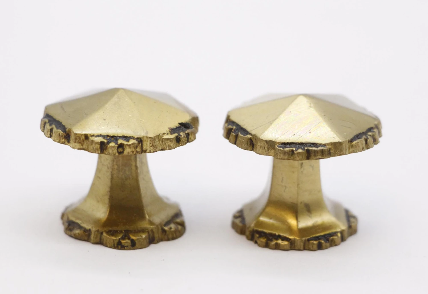 Pair Of Vintage 1 In. Hexagon Scalloped Brass Cabinet Drawer Knobs