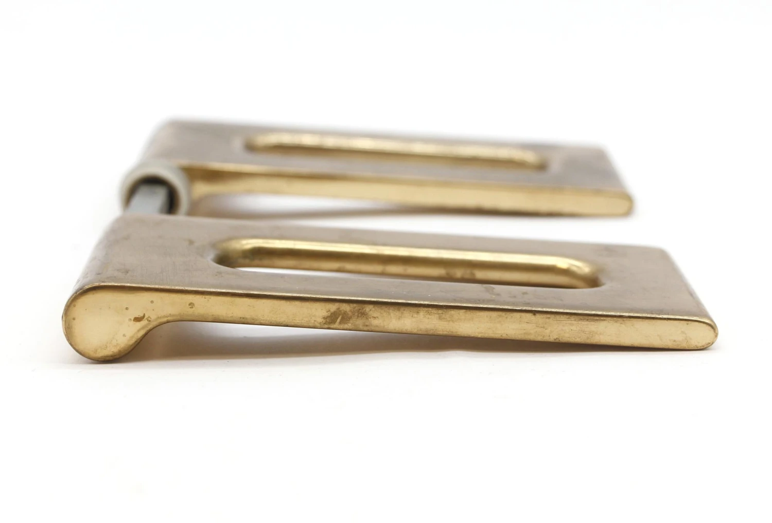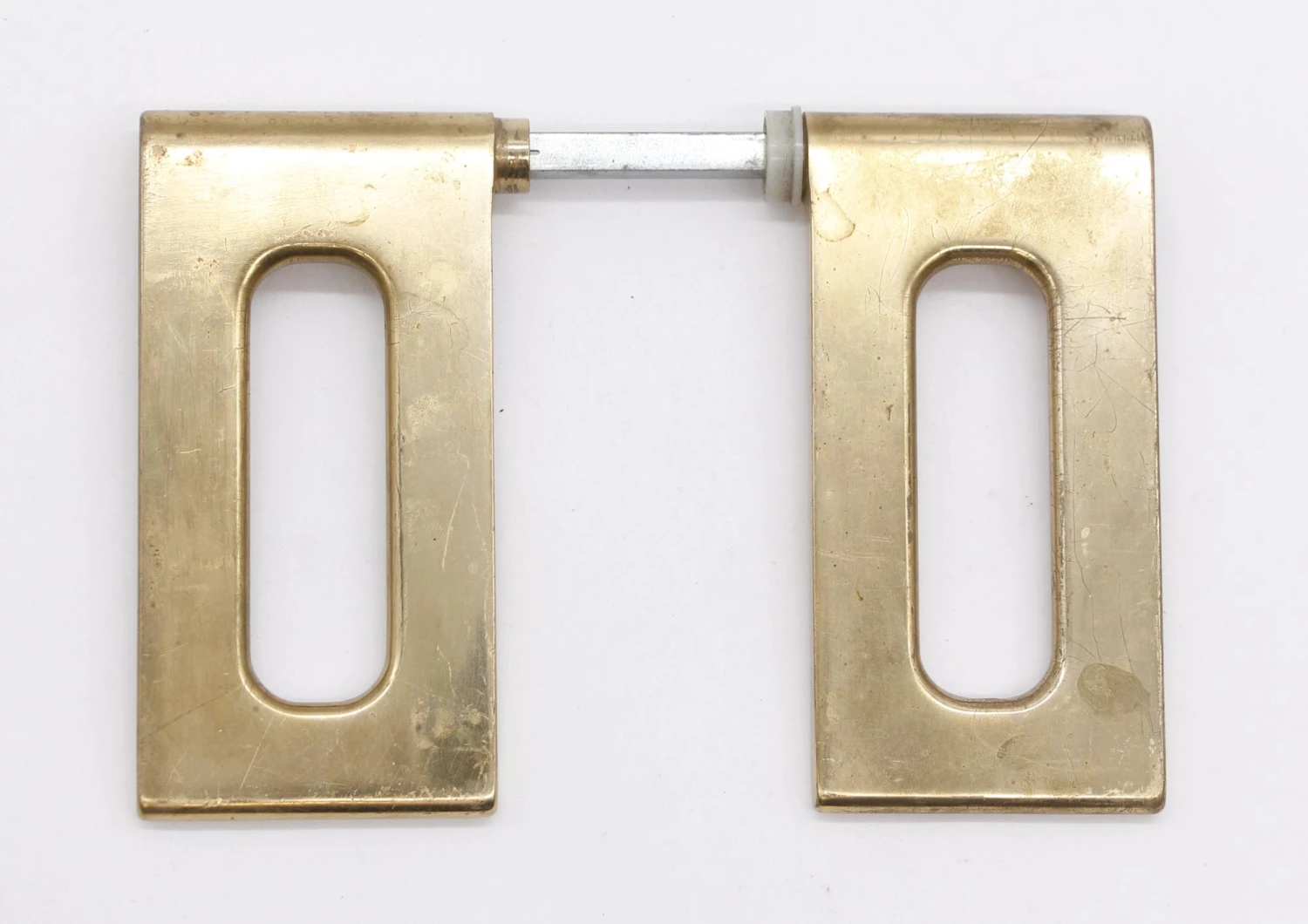 Pair Of Vintage Italian Modern Brass Rectangle Door Handles