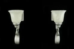 Be the first to review “Pair Of Vintage One Arm White Alabaster Shade Silver Steel Wall Sconces” Cancel reply