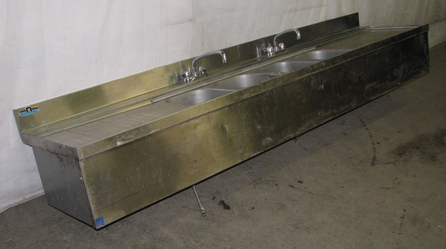 Reclaimed 8 Ft. Four Bay Stainless Steel Bar Sink