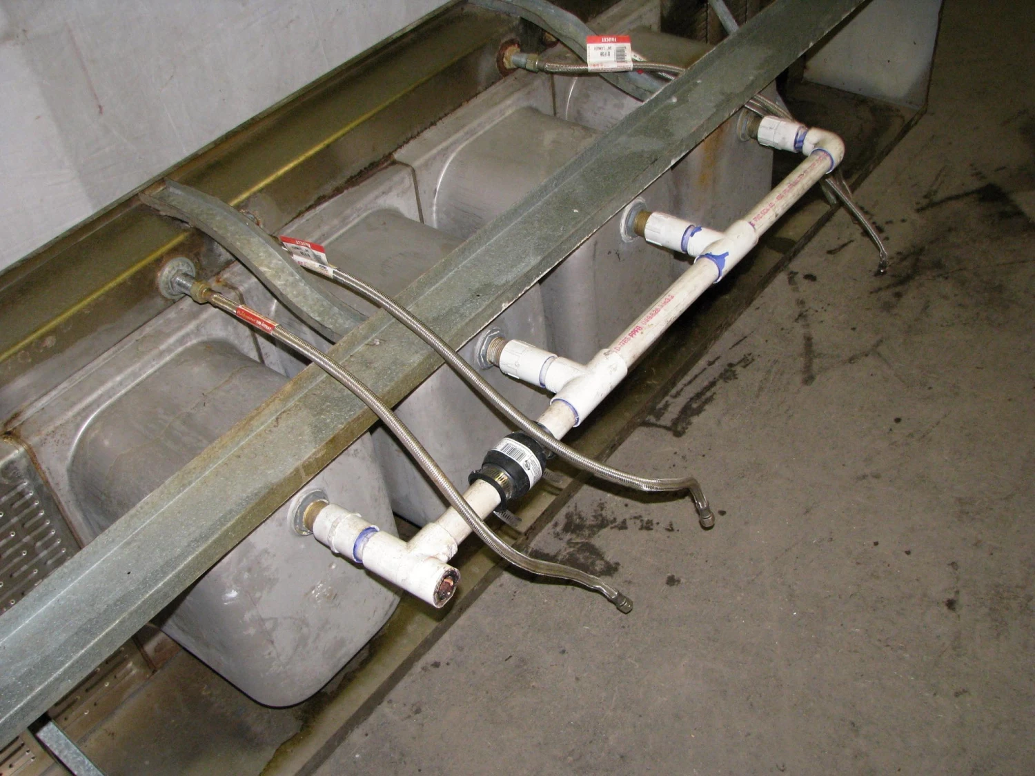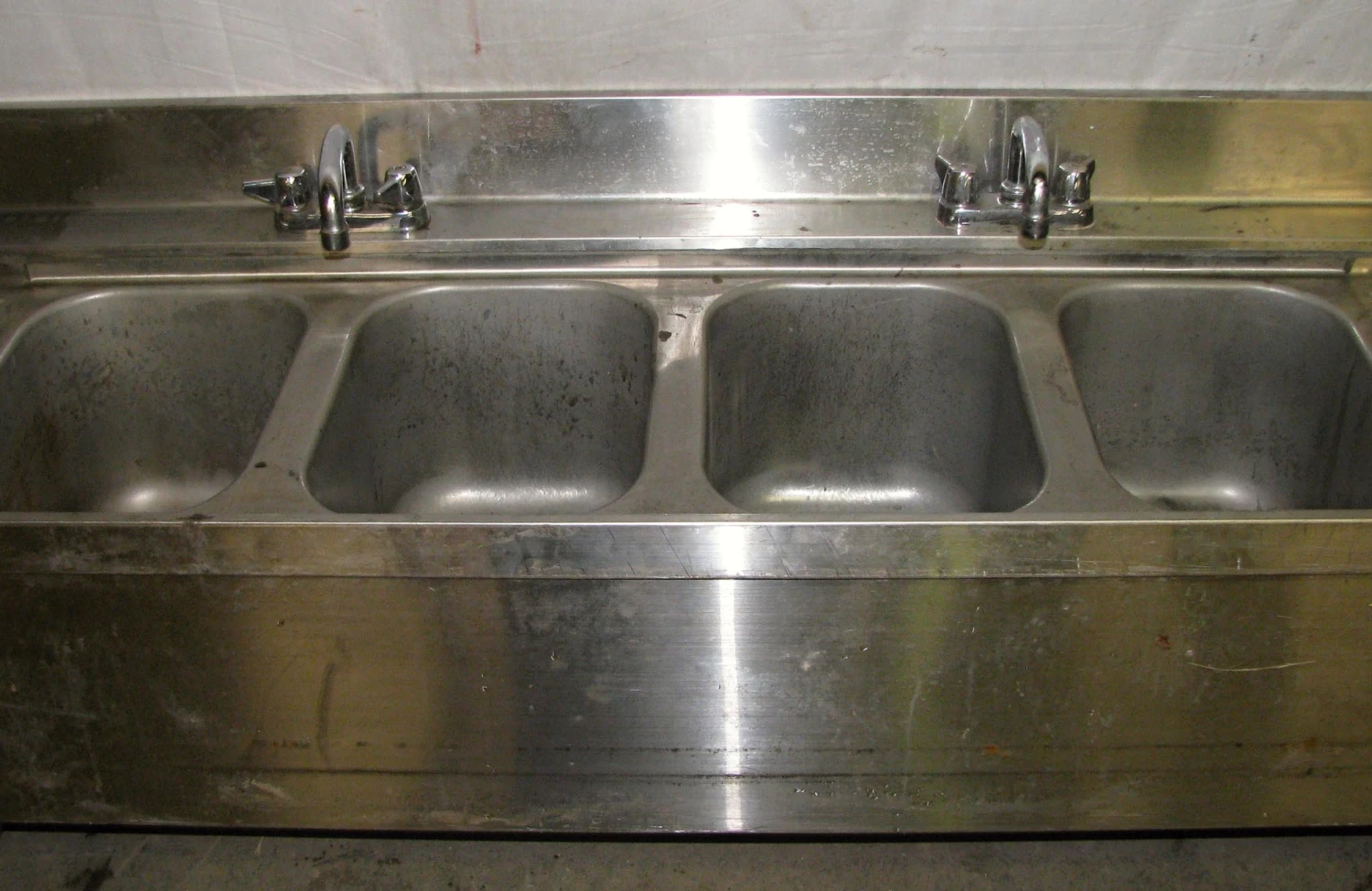 This extra long sink is great for behind the bar counter, with two faucets and four sink basins.