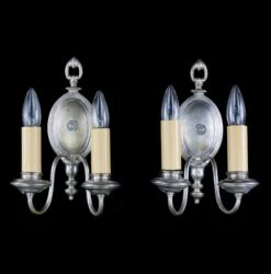 Be the first to review “Restored Pair Of Colonial Nickeled Brass 2 Arm Wall Sconces” Cancel reply