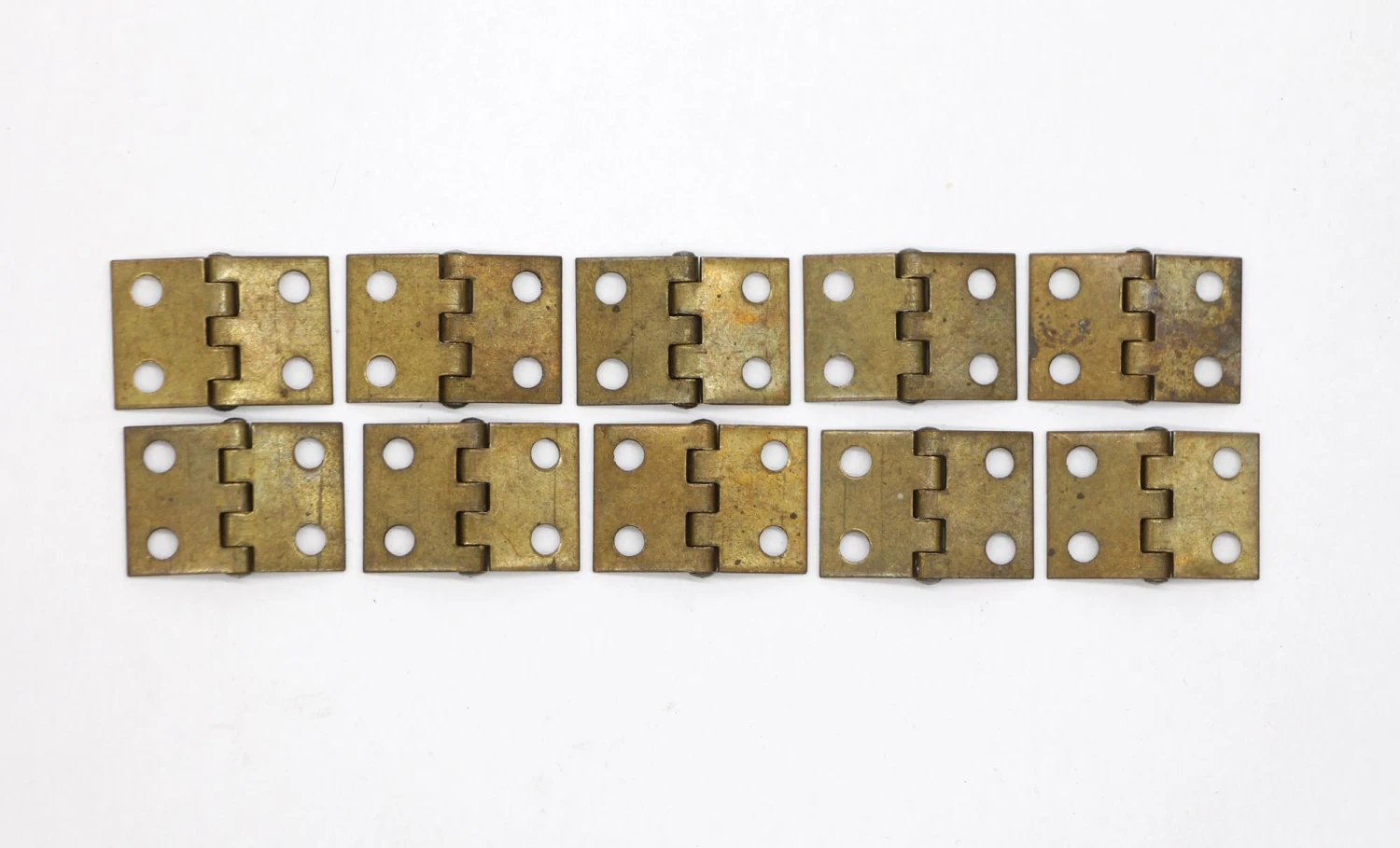 Set Of 10 Brass Plated 0.75 X 1.125 Steel Butt Hinges