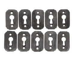 Crafted with attention to detail, this keyhole cover contractor or restorer set features a black cast iron construction and a rounded corner design. The black cast iron material not only ensures durability but also brings a classic aesthetic that complements various door styles. The rounded corner design provides a subtle yet distinctive accent to your door hardware, creating a cohesive and polished look. Sold as a set of 10.