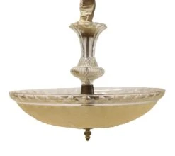 1940s Glass Floral Amber & Cream Glass Semi Flush Mount Light