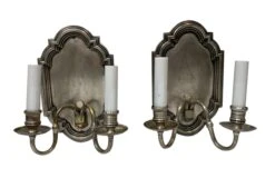 Silver Finish Brass 2 Arm Georgian Wall Sconces