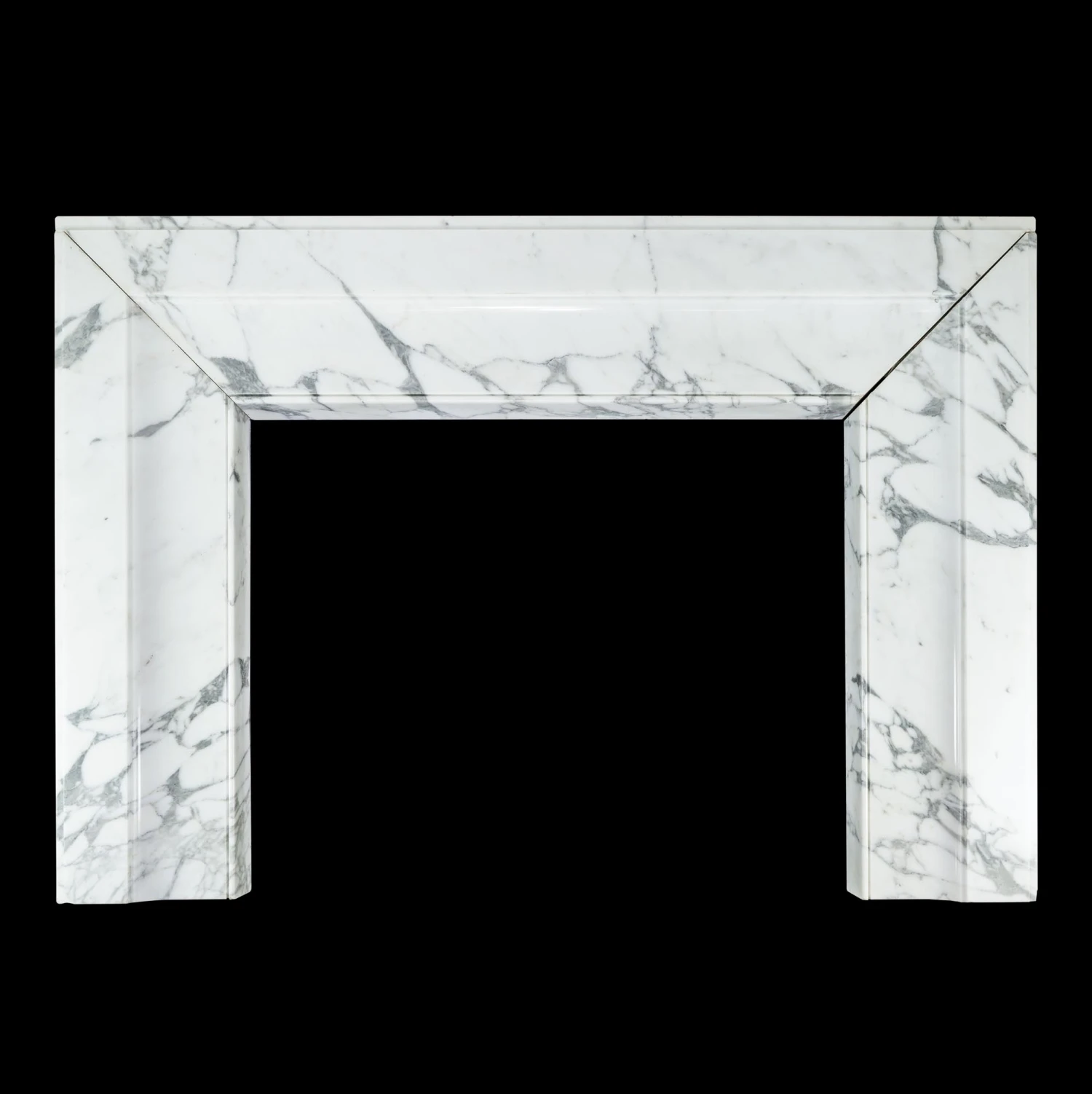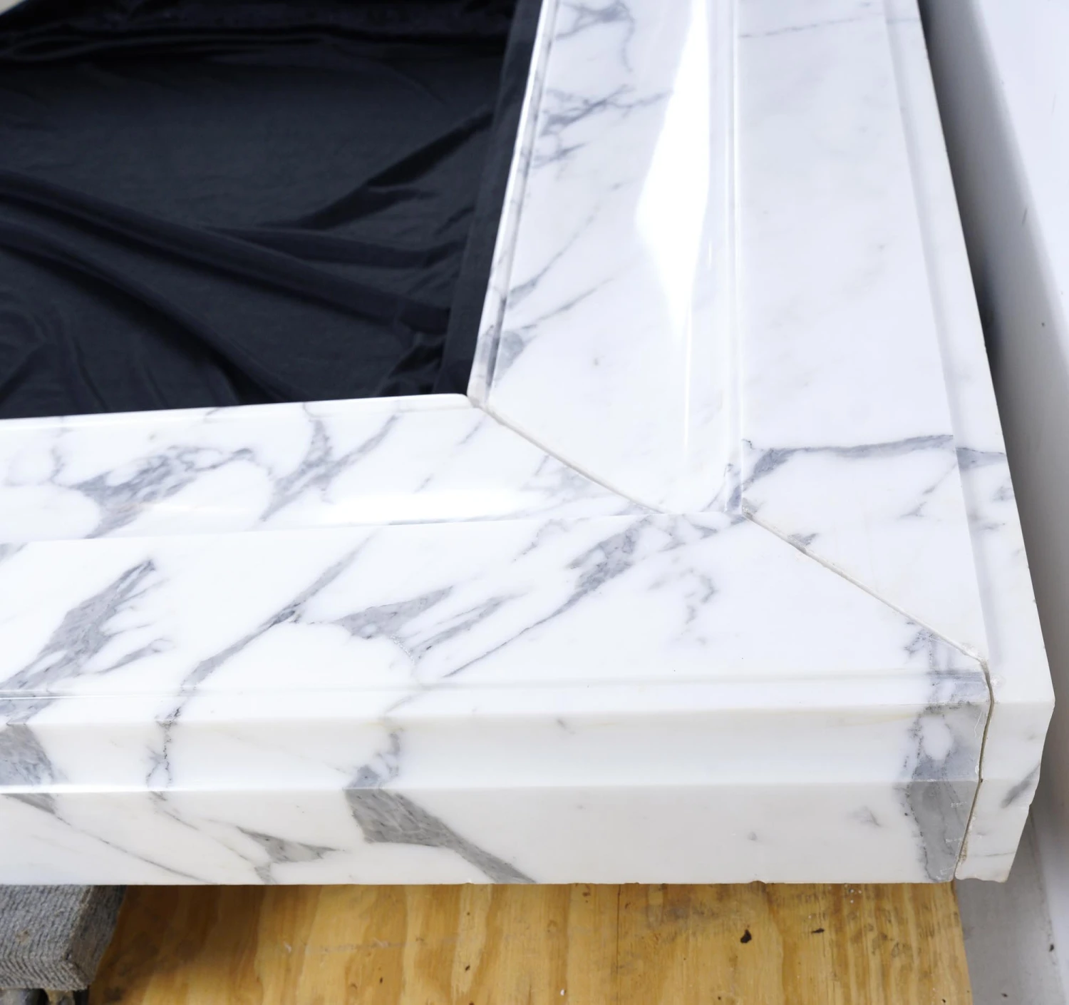 Solid Carved Block White & Gray Statuary Marble Mantel