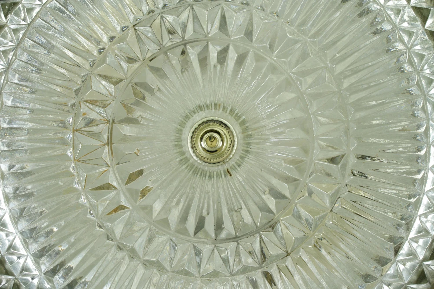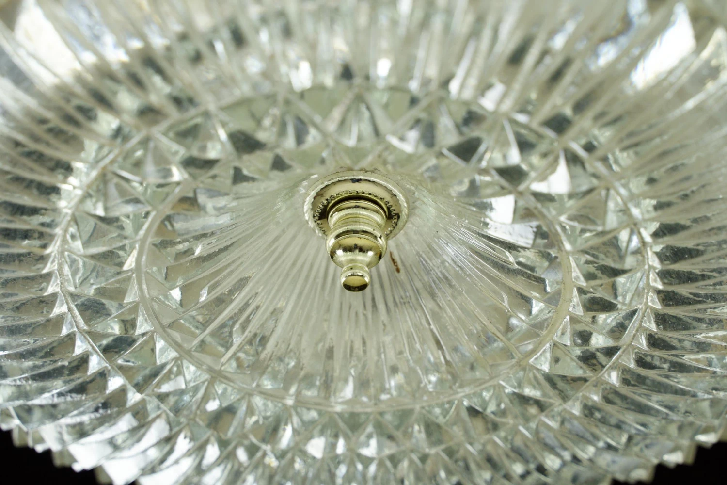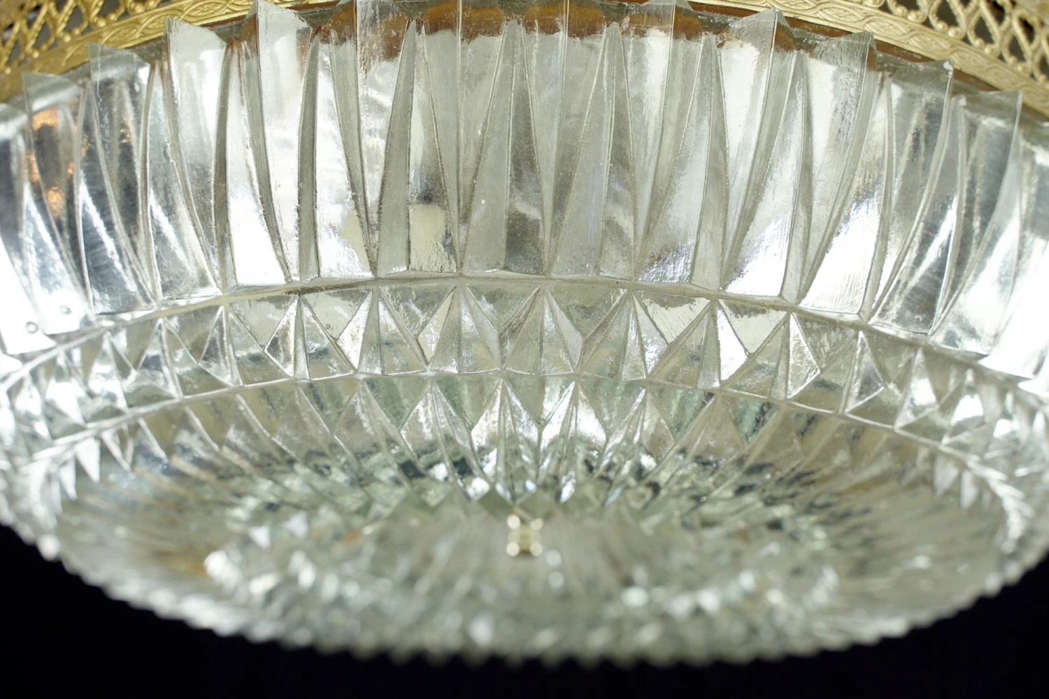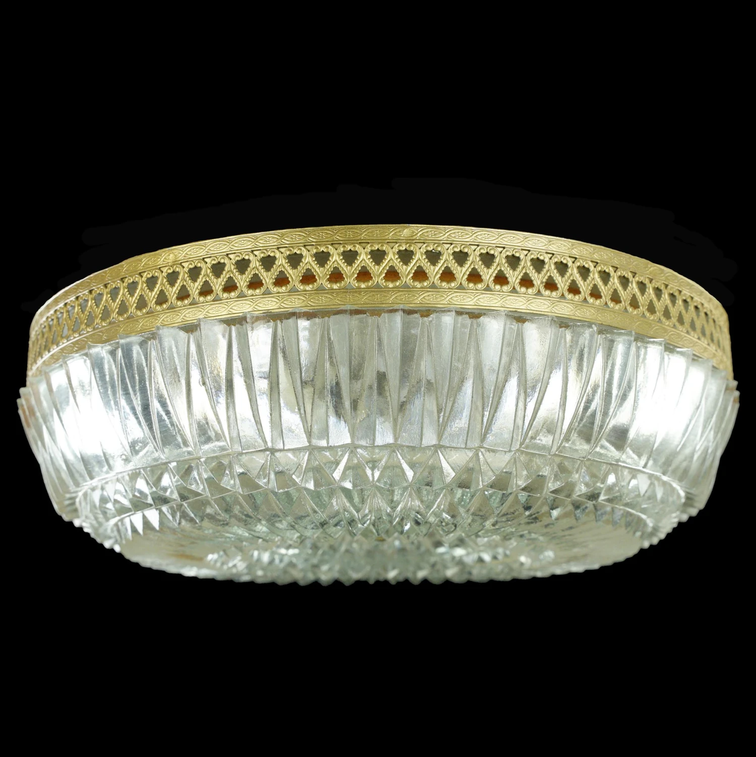 The Plaza Hotel Clear Faceted Glass Lattice Brass Rim Flush Mount Light