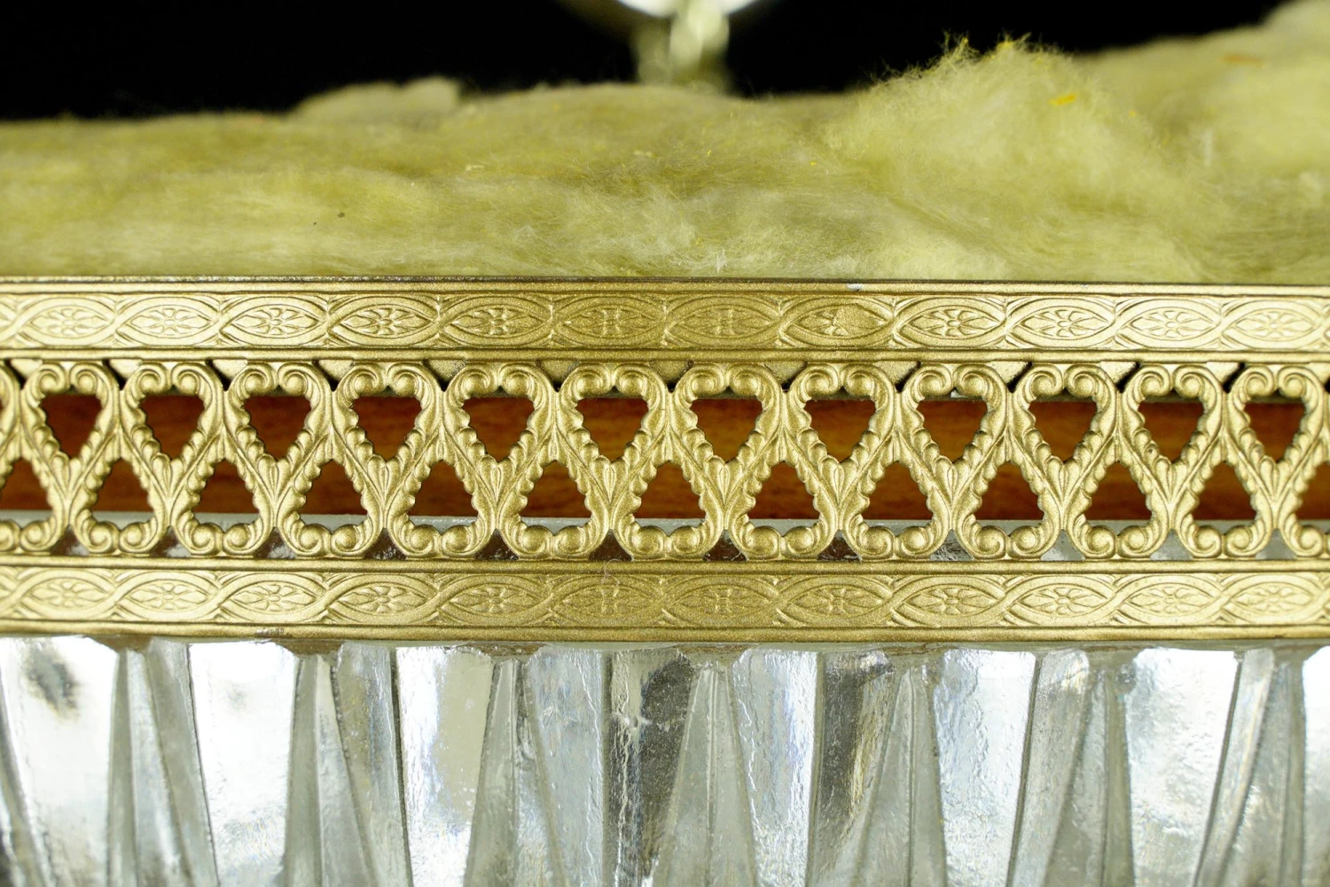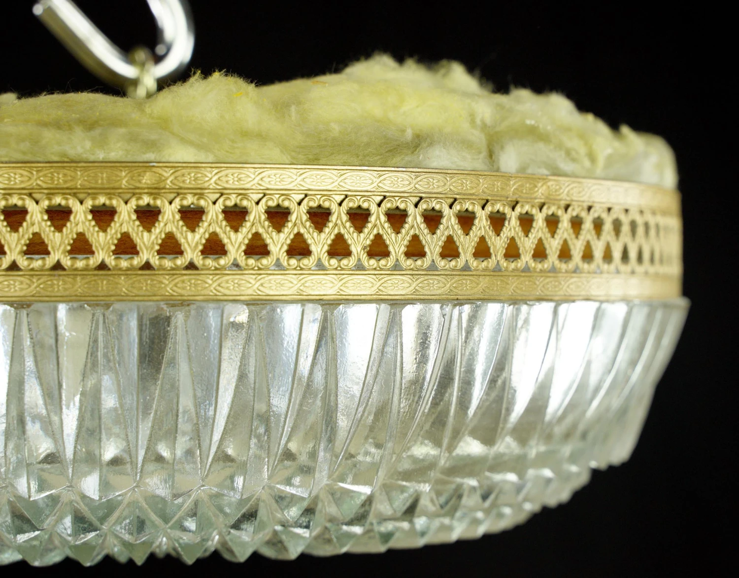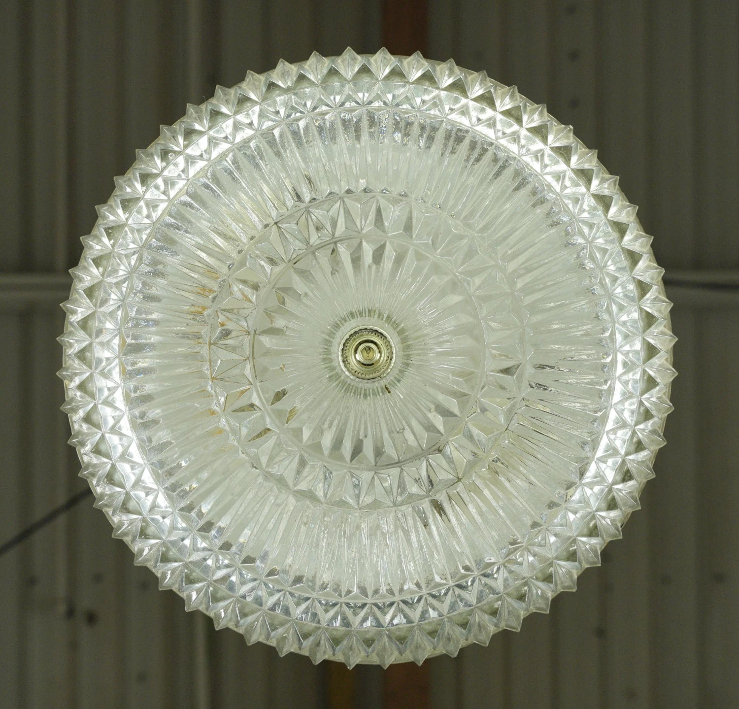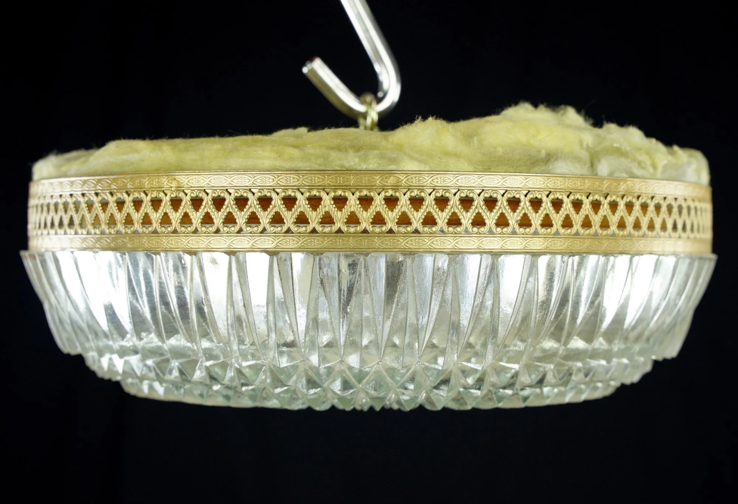 The Plaza Hotel Clear Faceted Glass Lattice Brass Rim Flush Mount Light
