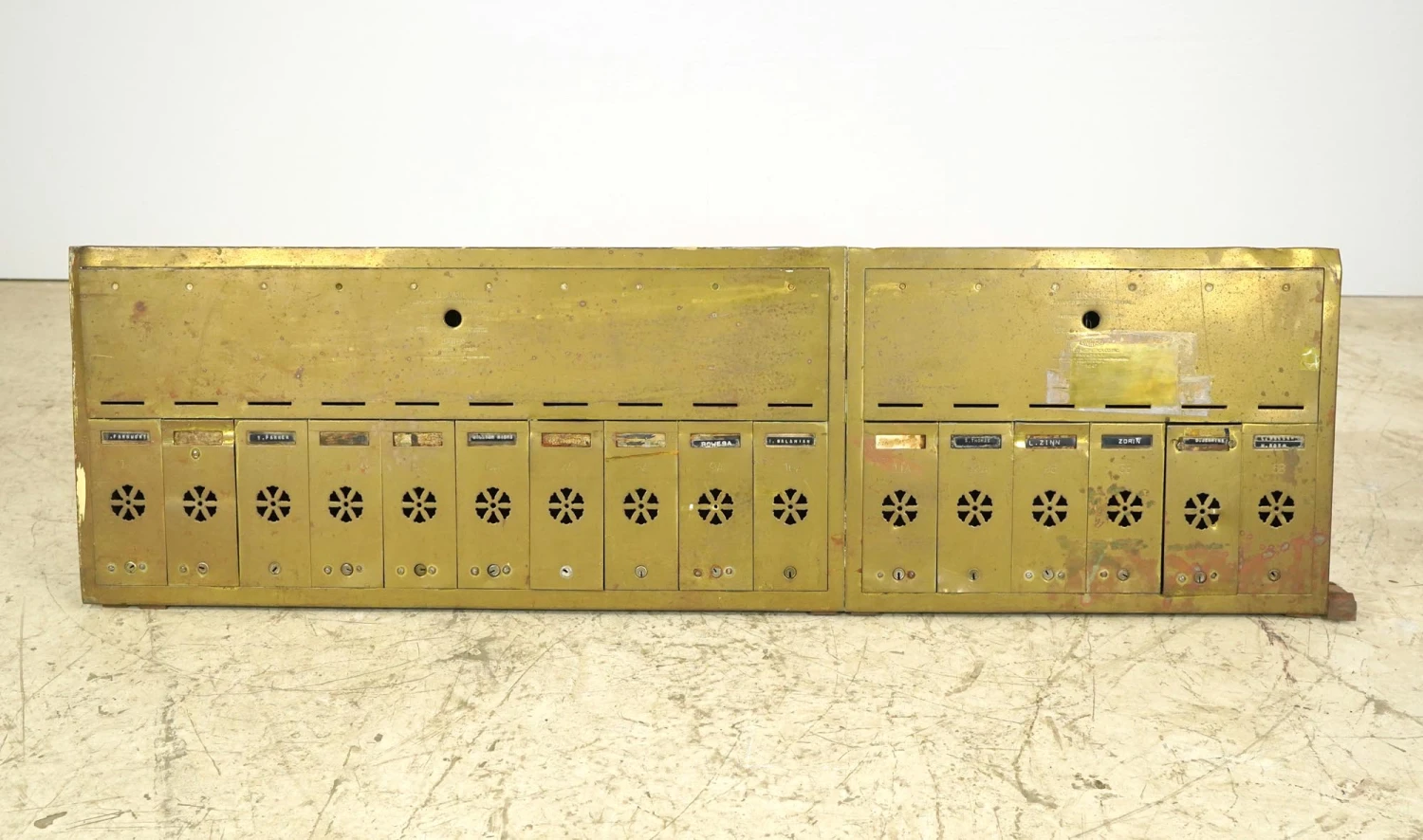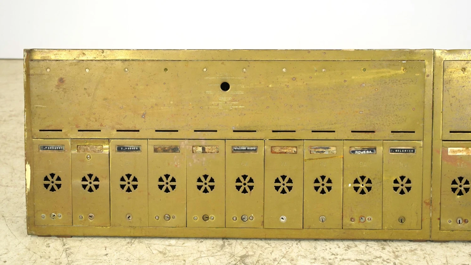 United Metal Box Co. Brass 16 Unit Apartment Building Mailbox