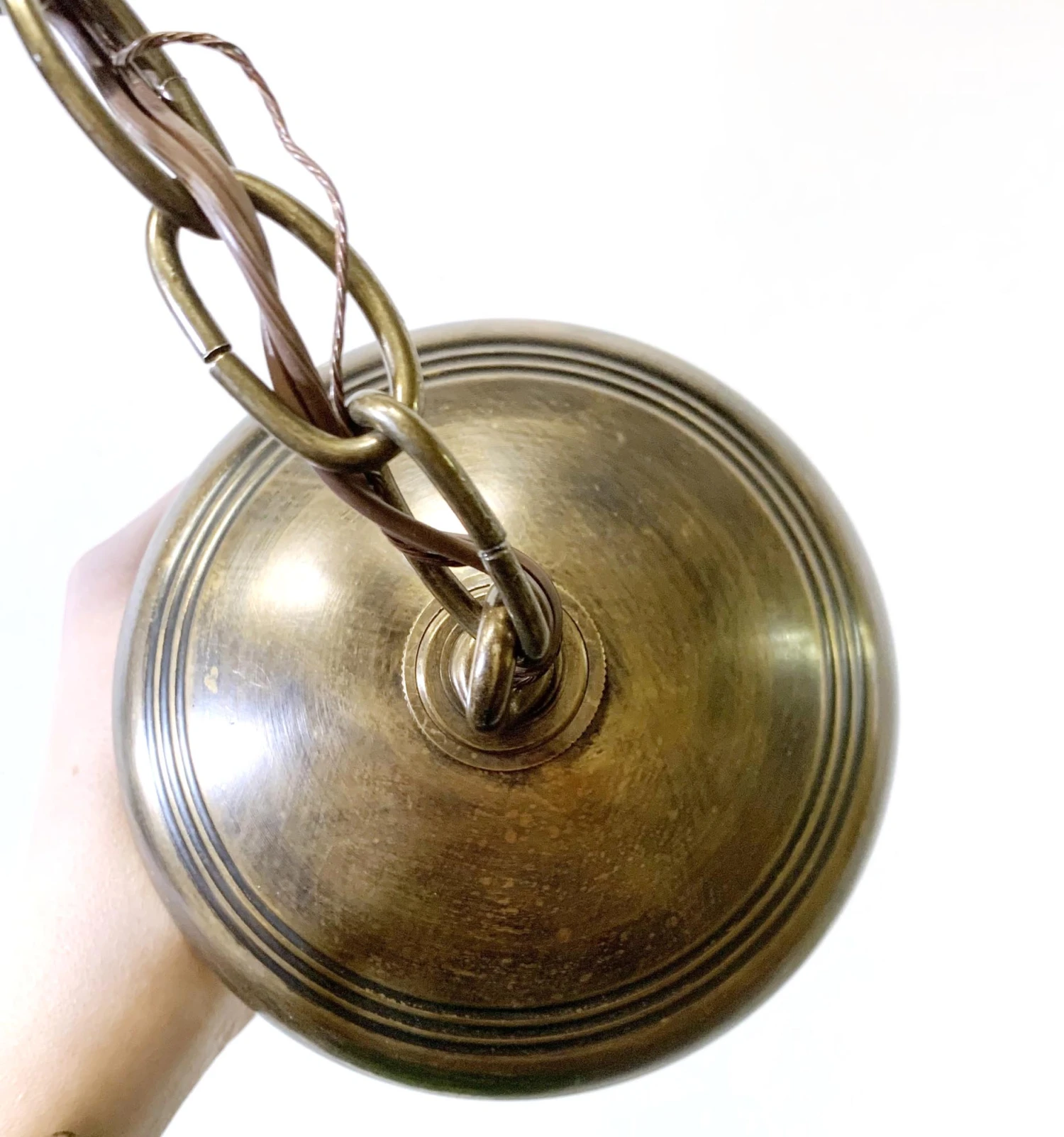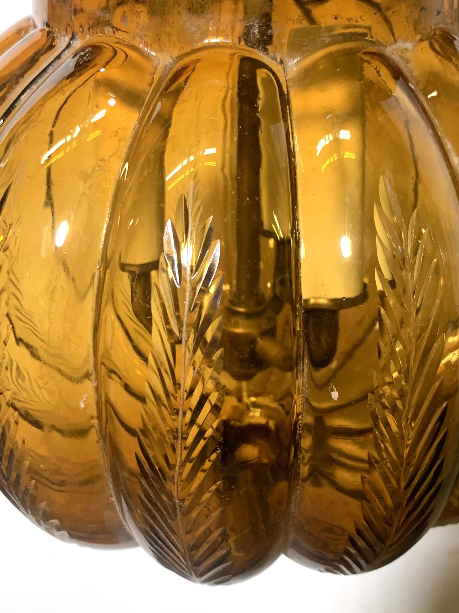 Val Saint Lambert Antique 9 In. Amber Crystal Glass Bell Jar Pendant Light