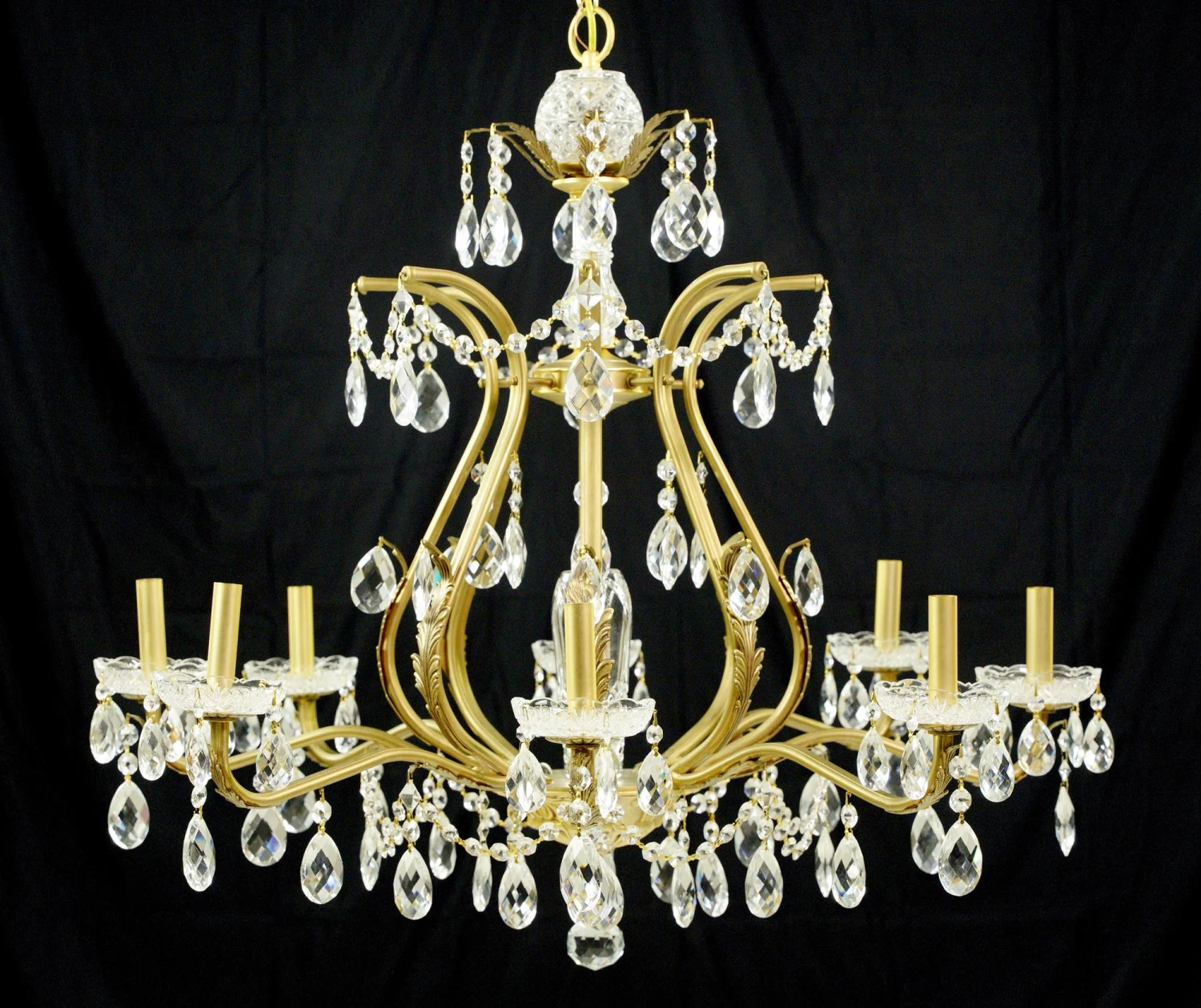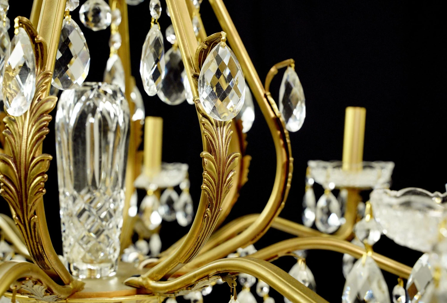 Victorian 8 Arm Crystal Candlestick Gilded Brass Chandelier