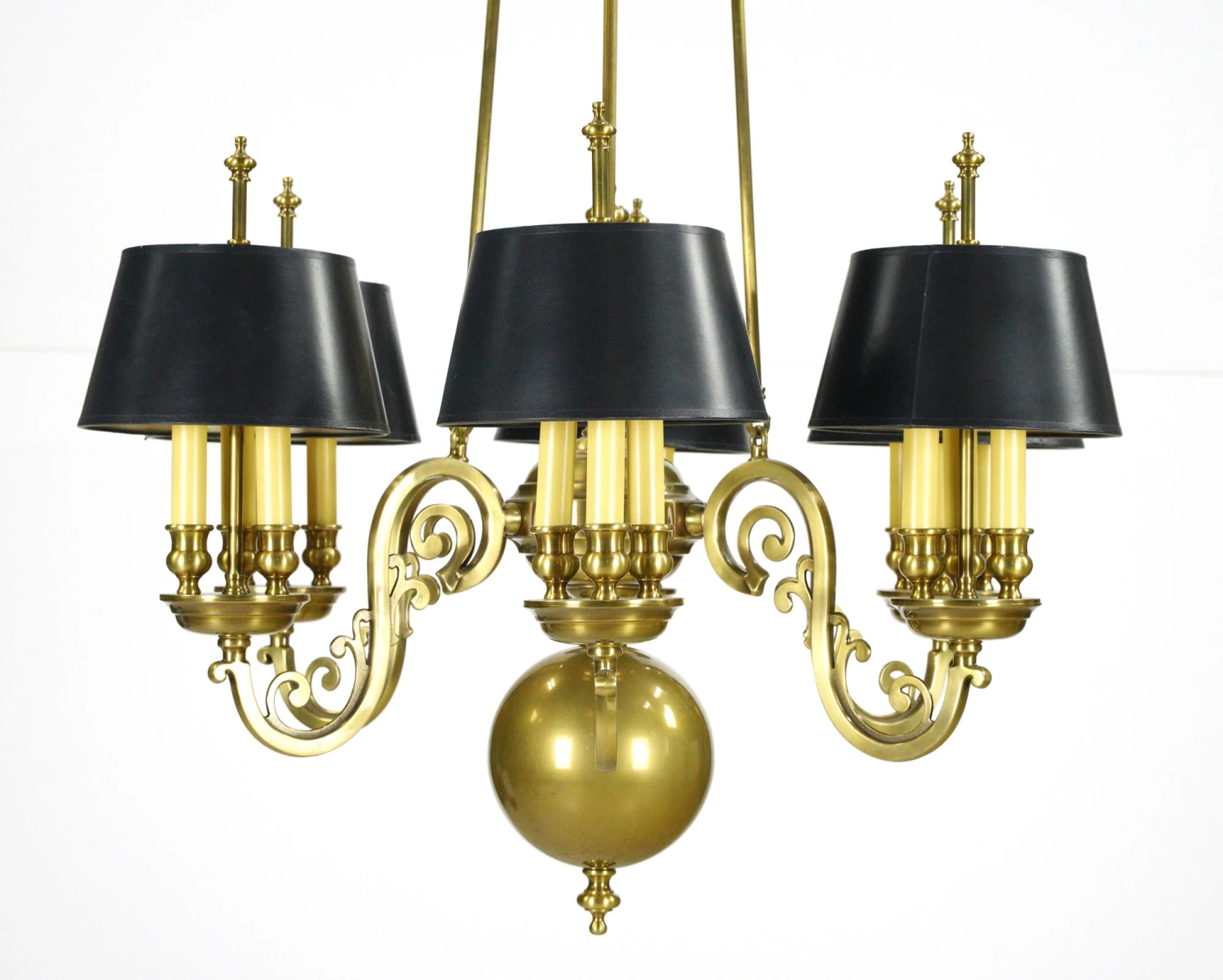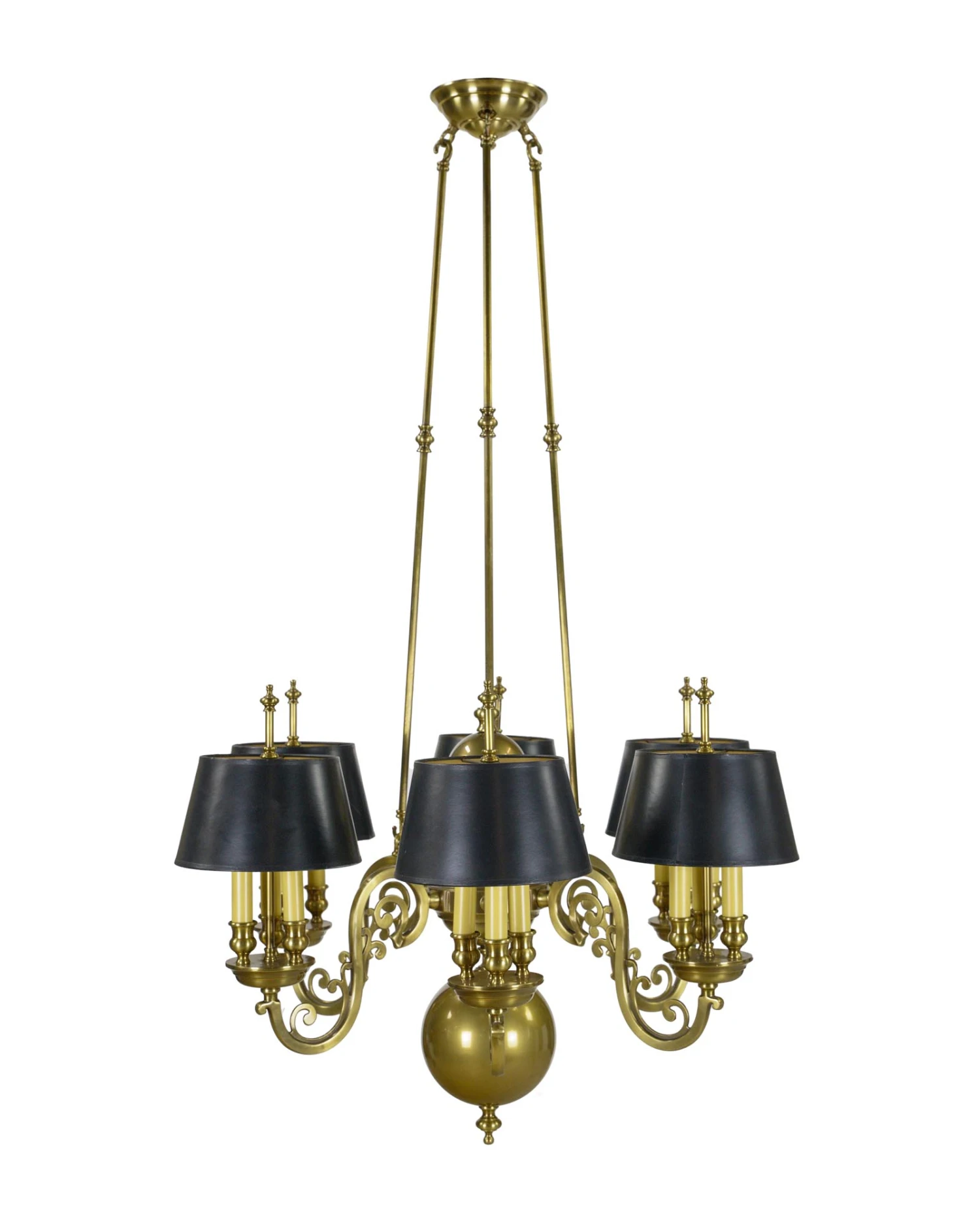 Victorian Black Shaded 6 Arm 18 Socket Brass Chandelier