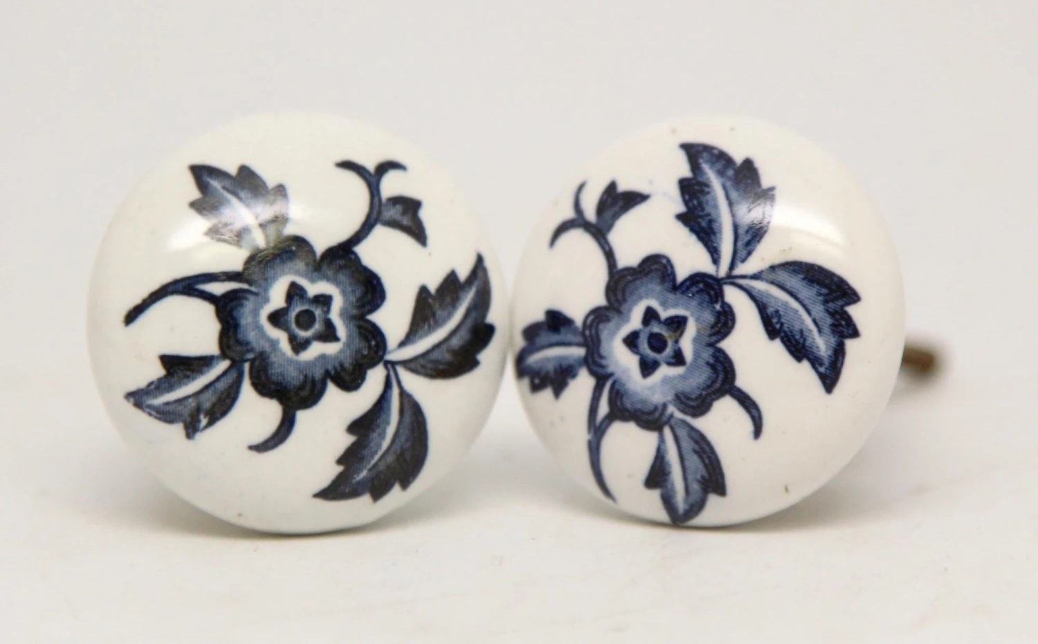 Vintage 1.375 In. Blue & White Floral Porcelain Drawer Cabinet Knob