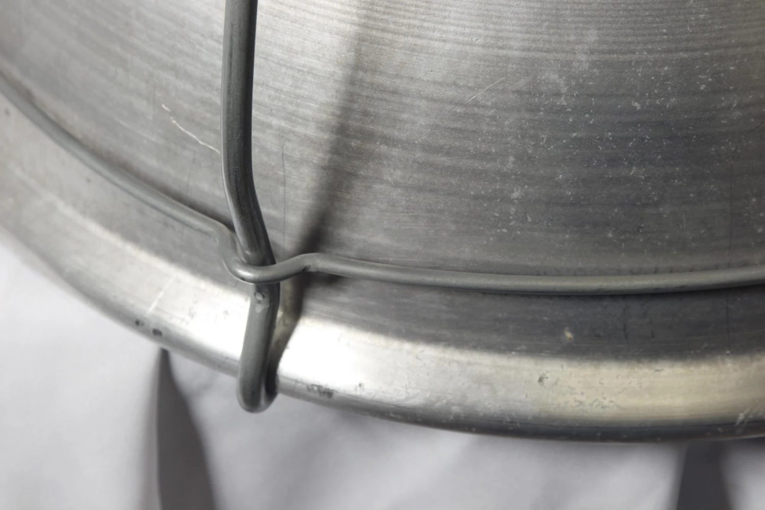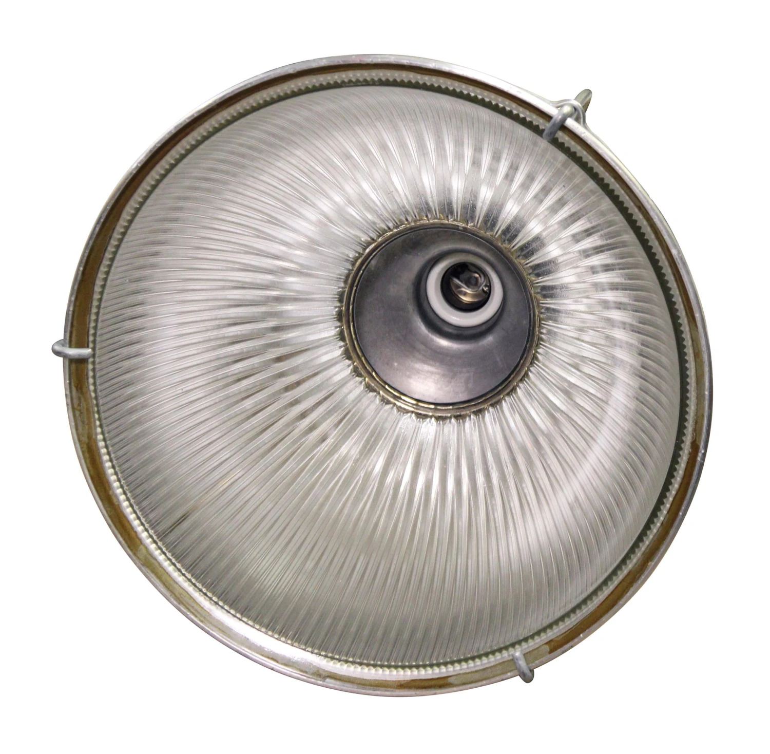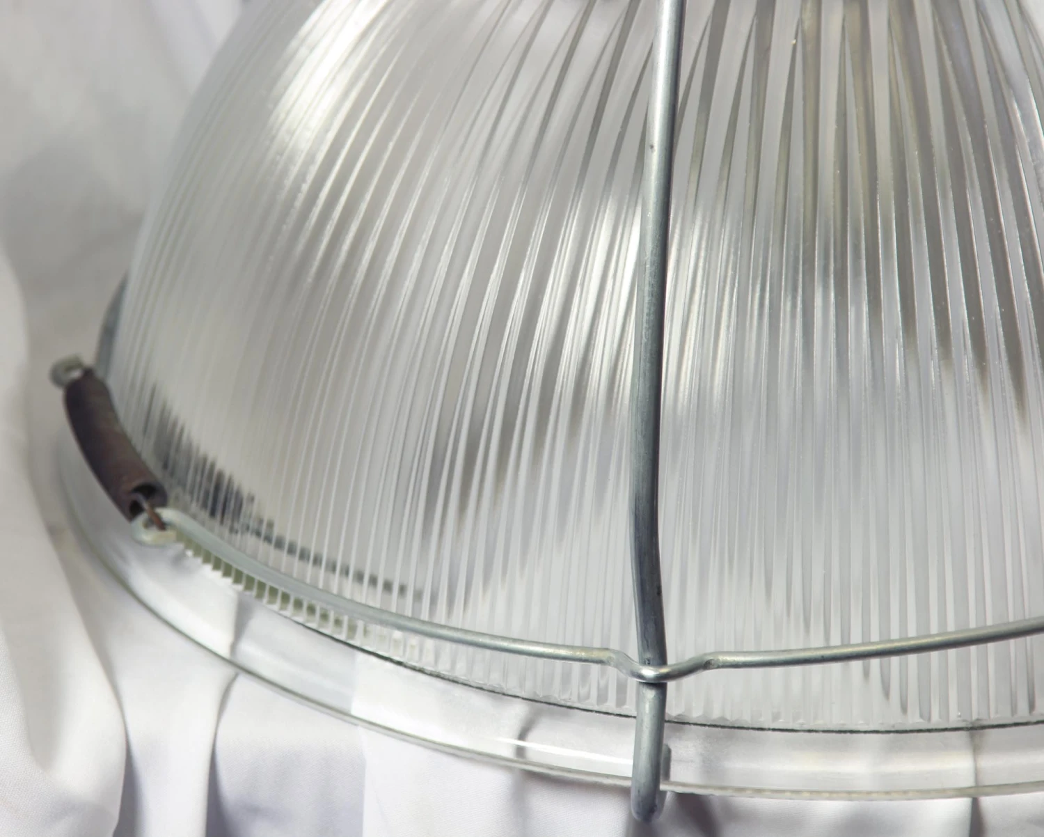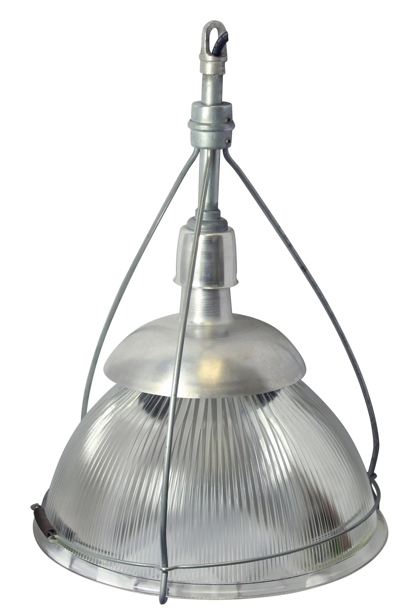 Vintage holophane industrial High Bay lights with metal skin. It can be purchased with or without skin. The metal shade can only be permanently removed. Priced each.
