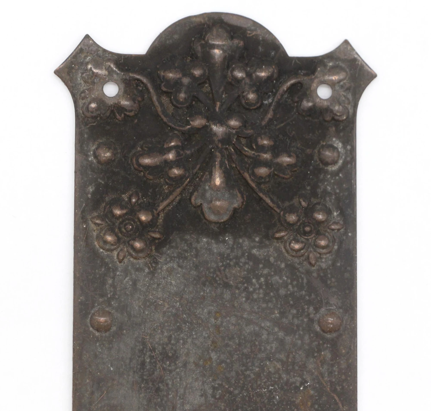 Vintage 9.625 In. Blackened Brass Floral Door Push Plate