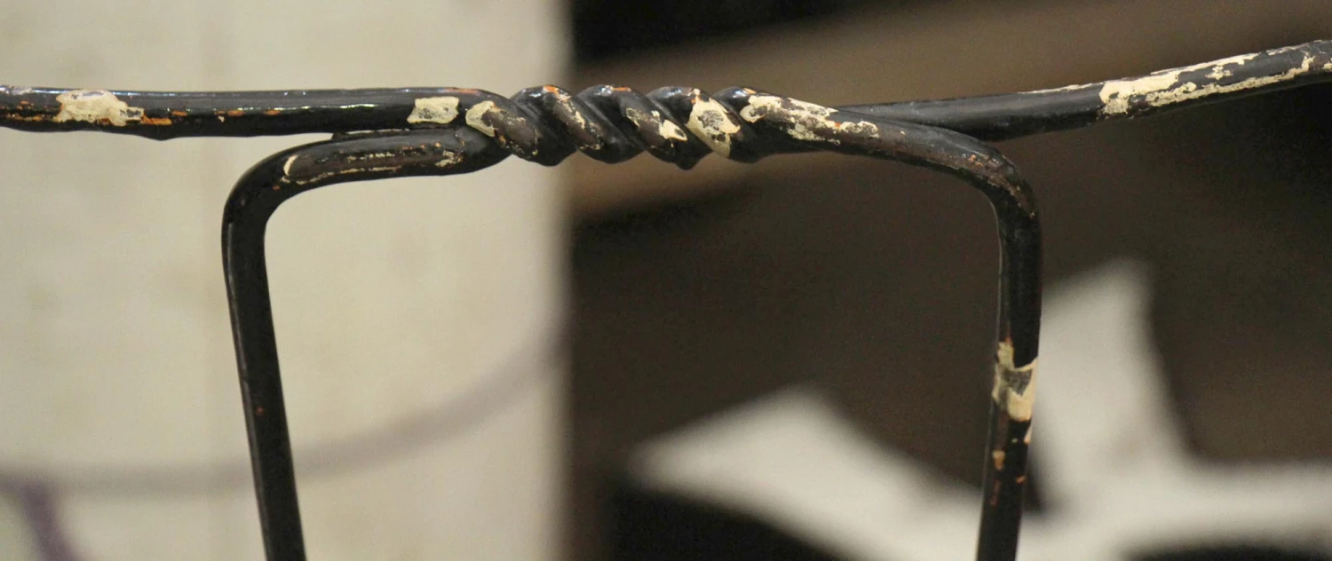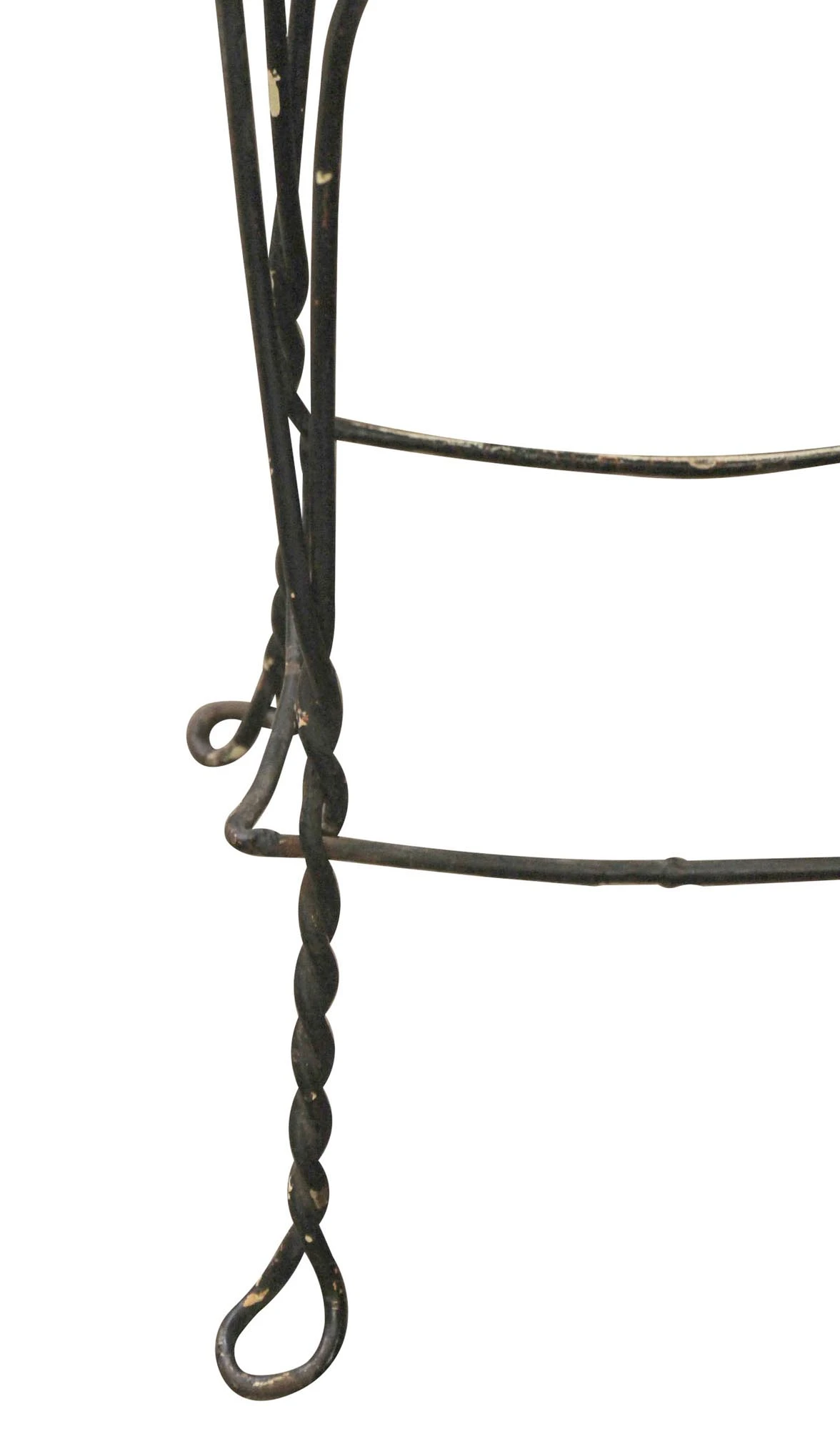 Vintage ice cream parlor chairs with simple wrought iron design. Priced each.