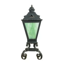 Be the first to review “Vintage Black Iron Standing Green Slag Glass Lantern” Cancel reply