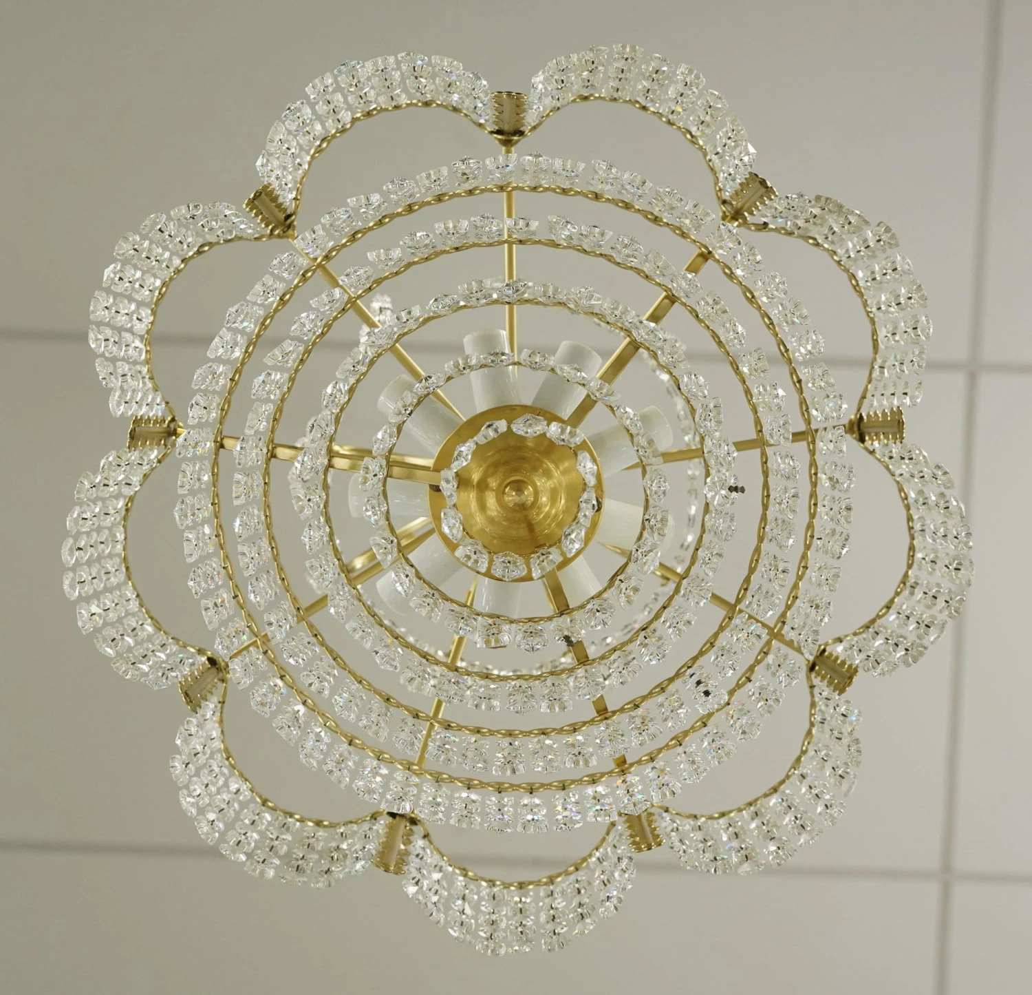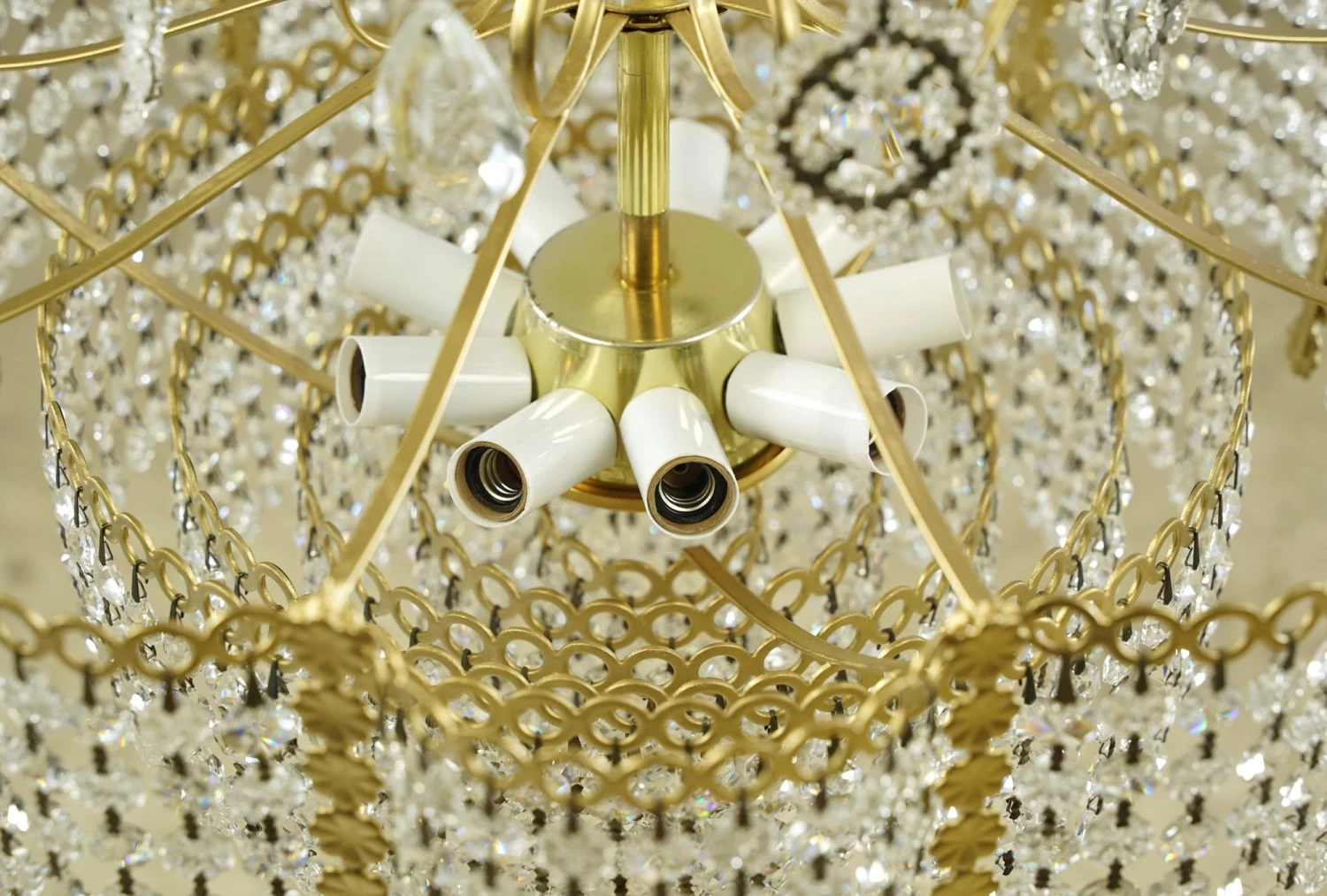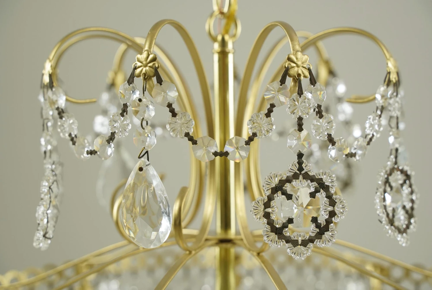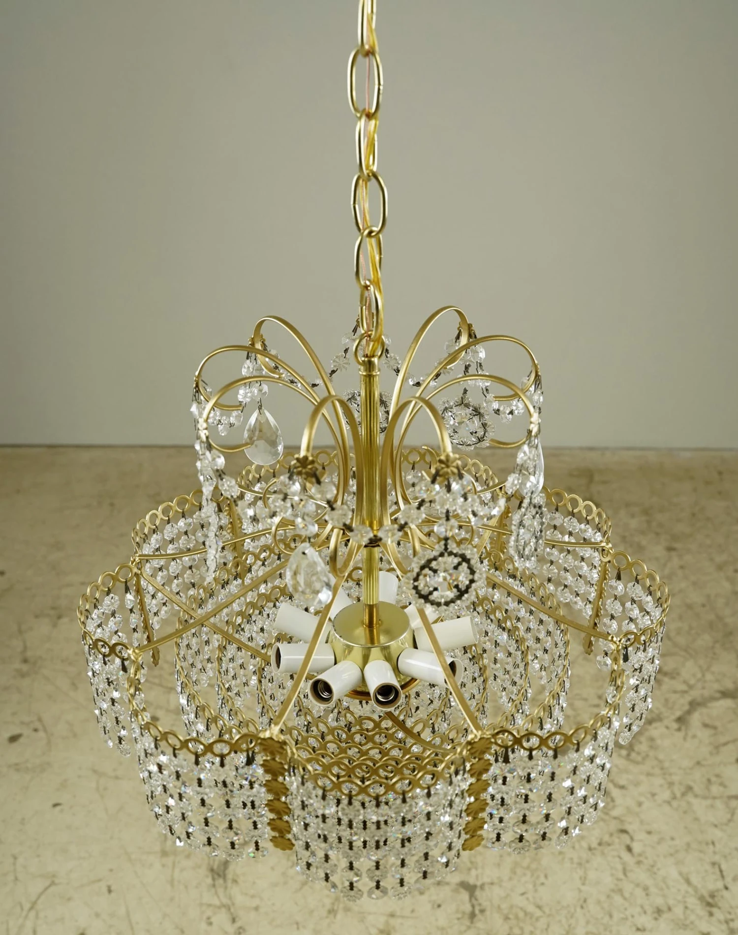 Vintage Cascading Crystal Polished Brass Basket Chandelier
