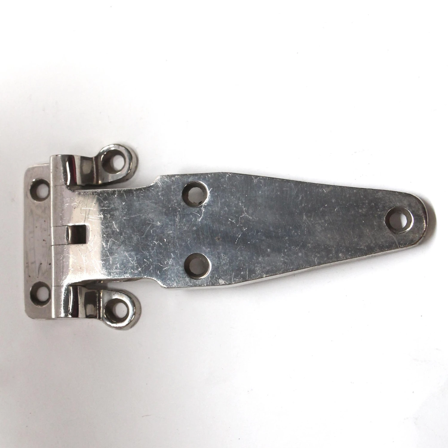 Chrome over brass ice box hinge. Good condition with surface wear from prior use. One available.