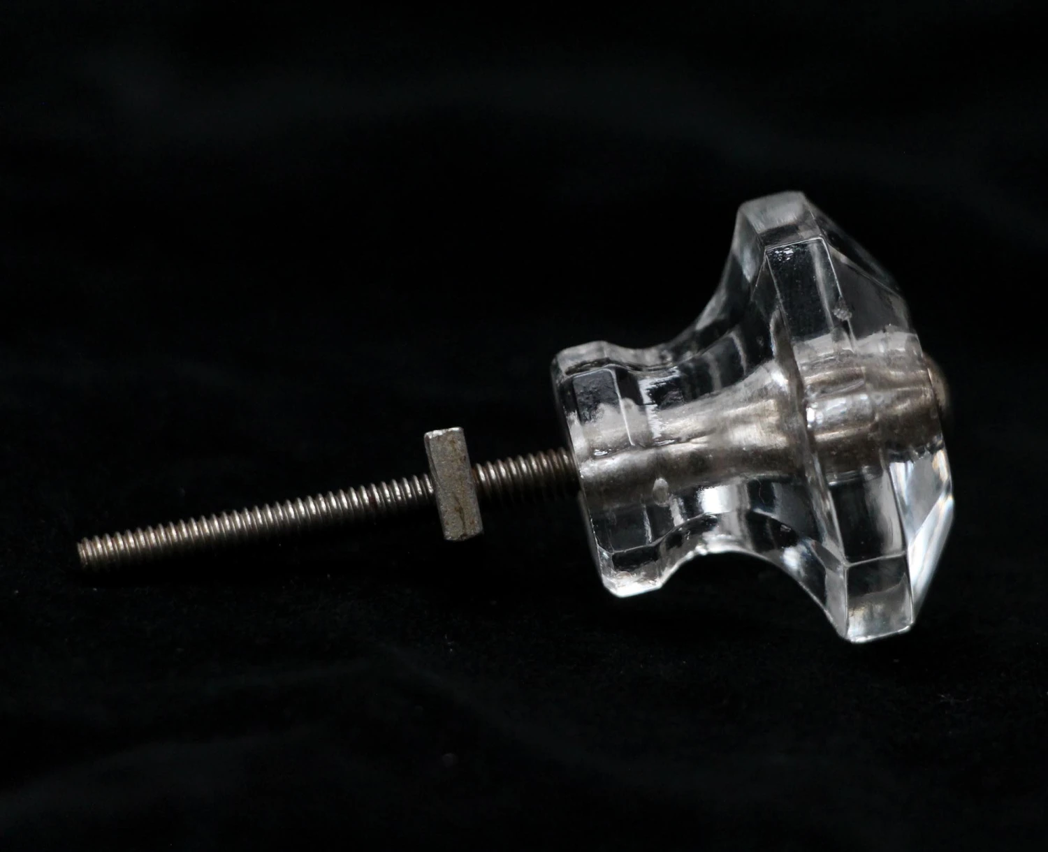 Vintage Clear Glass 1.25 In. Cabinet Drawer Hexagon Knob