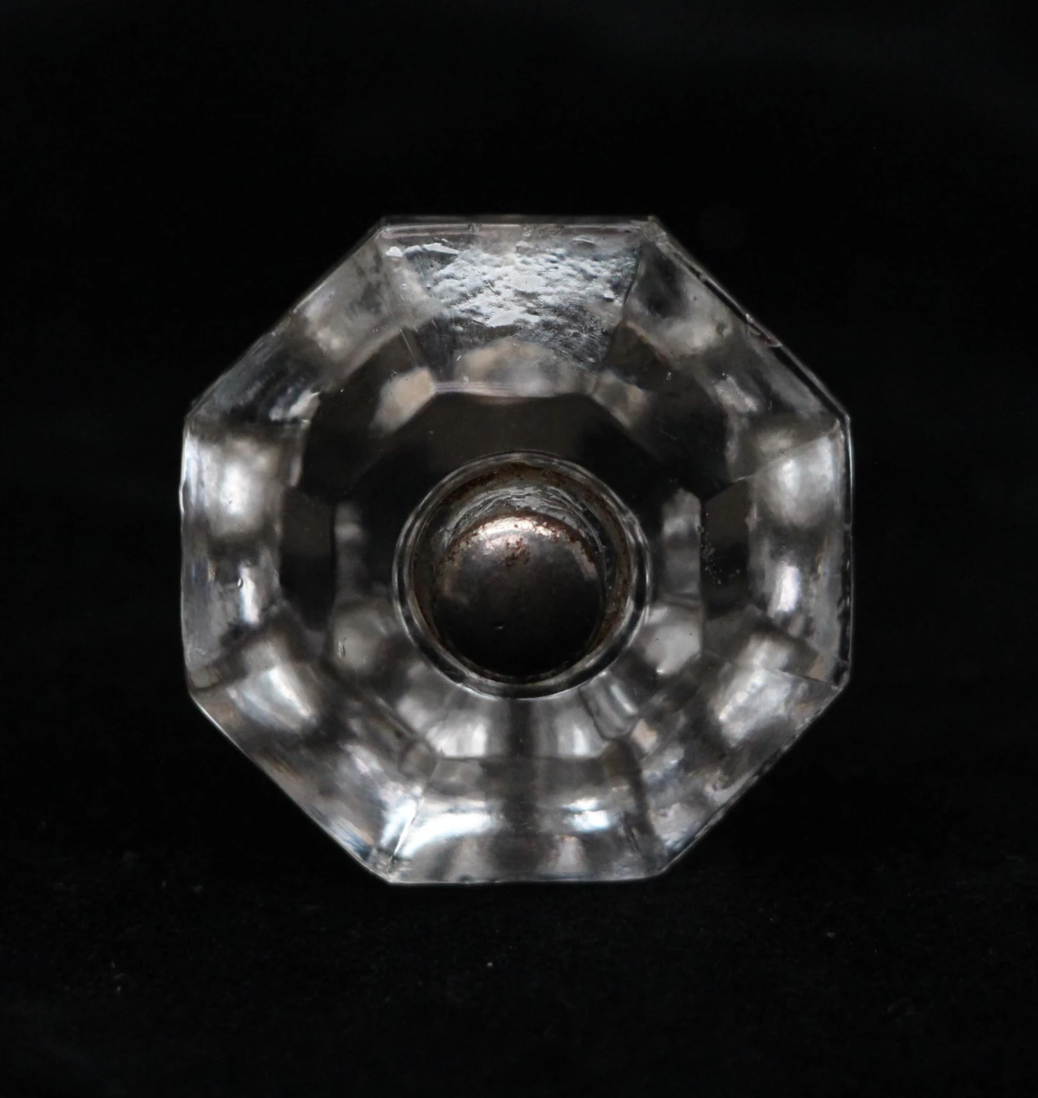 Classic clear glass hexagon shaped small drawer knob with center screw. Priced each.