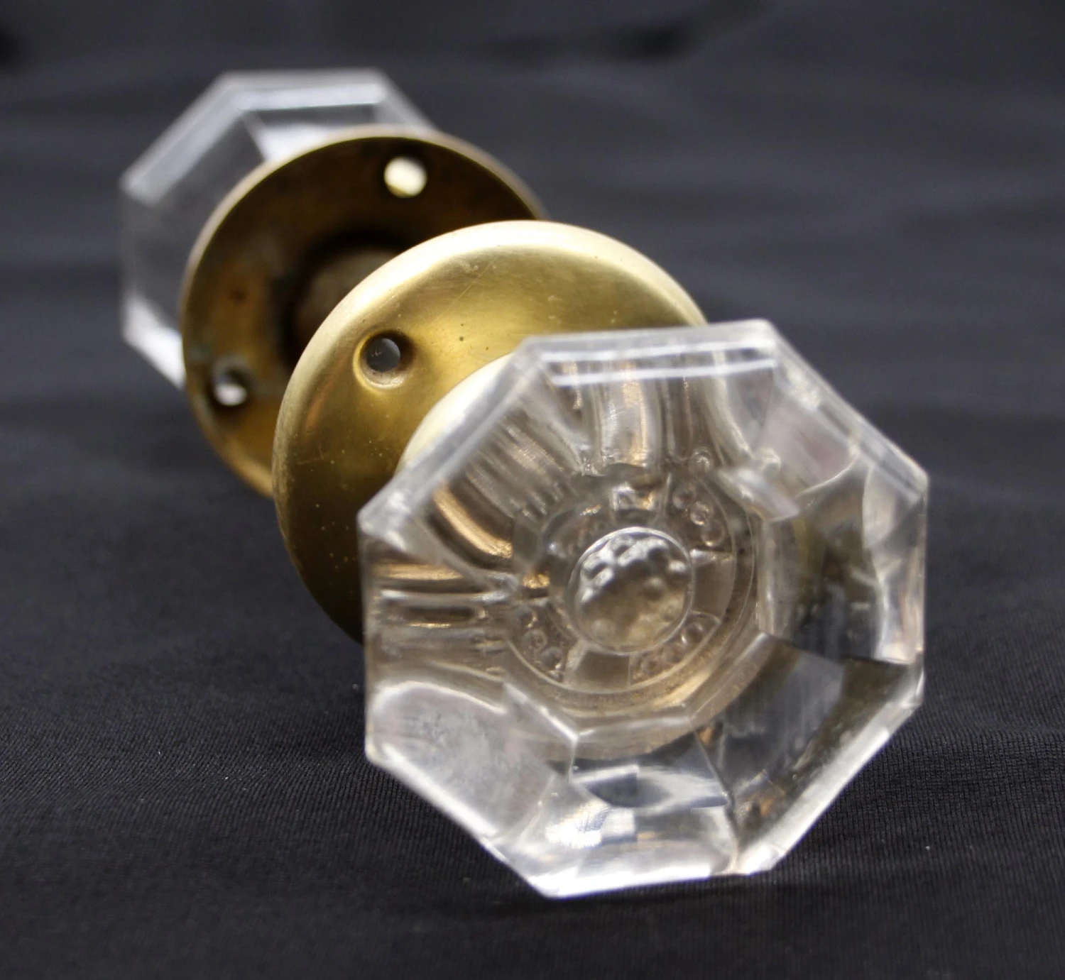 Vintage Concave Center Clear Glass Octagon Passage Door Knob Set