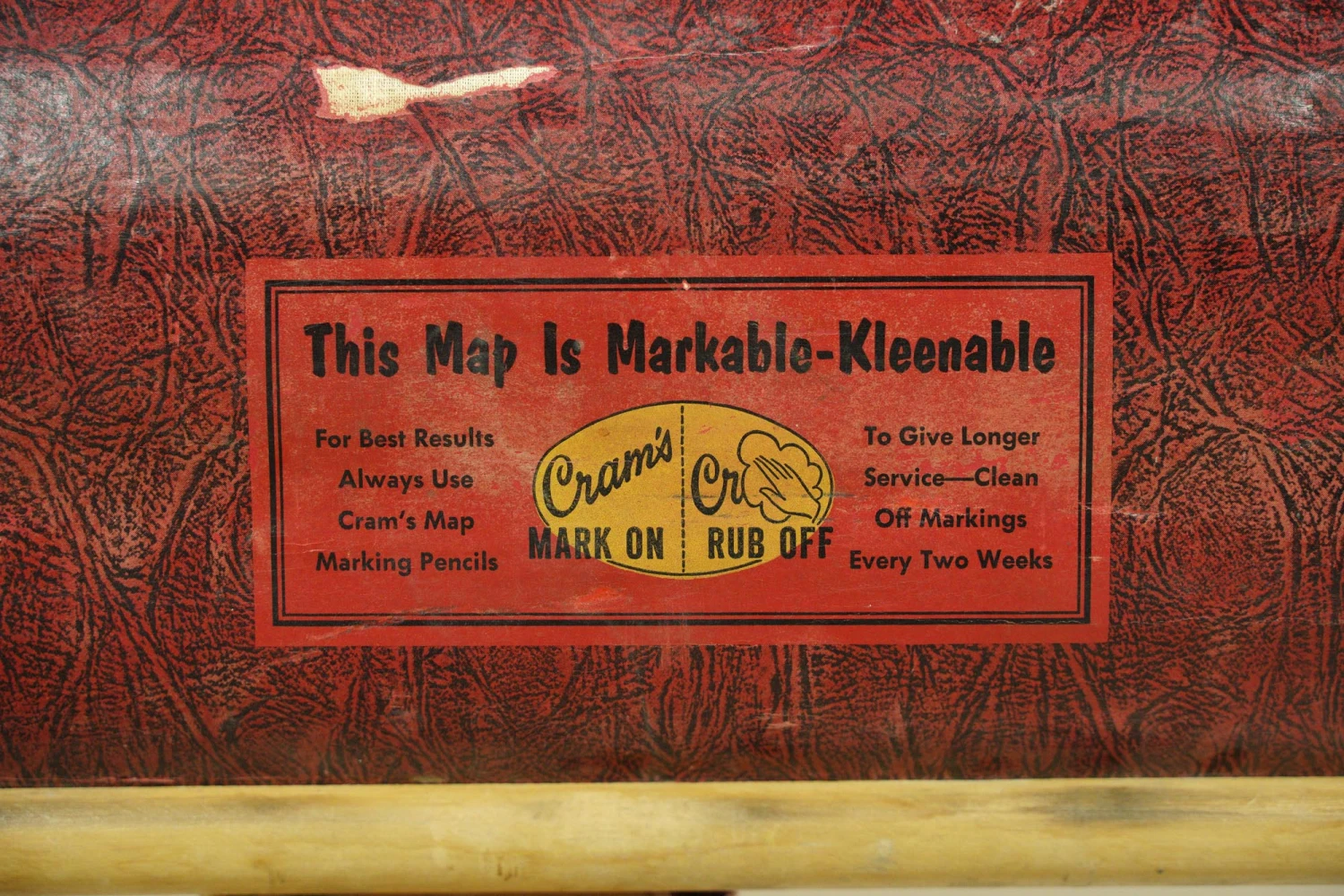 The vintage Cram’s Physical Political roll up school map of South America, crafted from pine wood, steel, and canvas, is a significant educational artifact. Published by The George F. Cram Company, Inc., with the map number C464, it likely offers a comprehensive view of the political and physical geography of South America during the time of its publication. This map serves as a valuable resource for studying the continent’s geographical and political features as they were understood in the past. This is in good condition, with age appropriate surface wear.