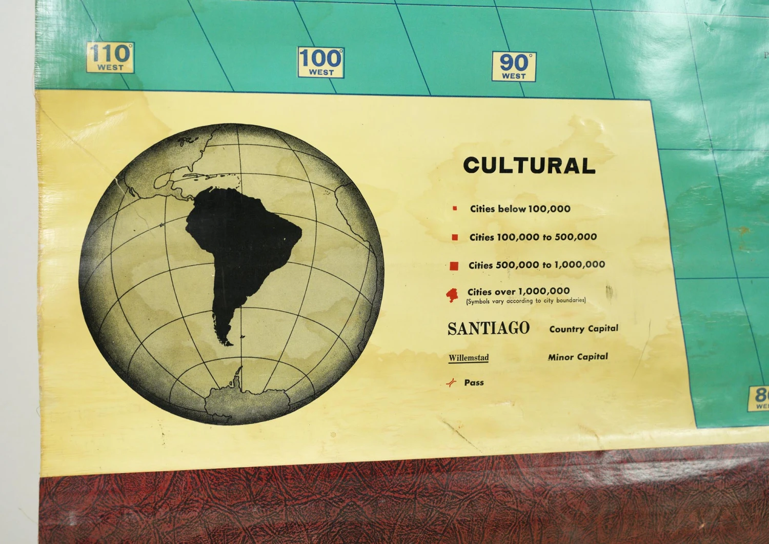 Vintage Cram’s Physical Political Roll Up School Map Of South America